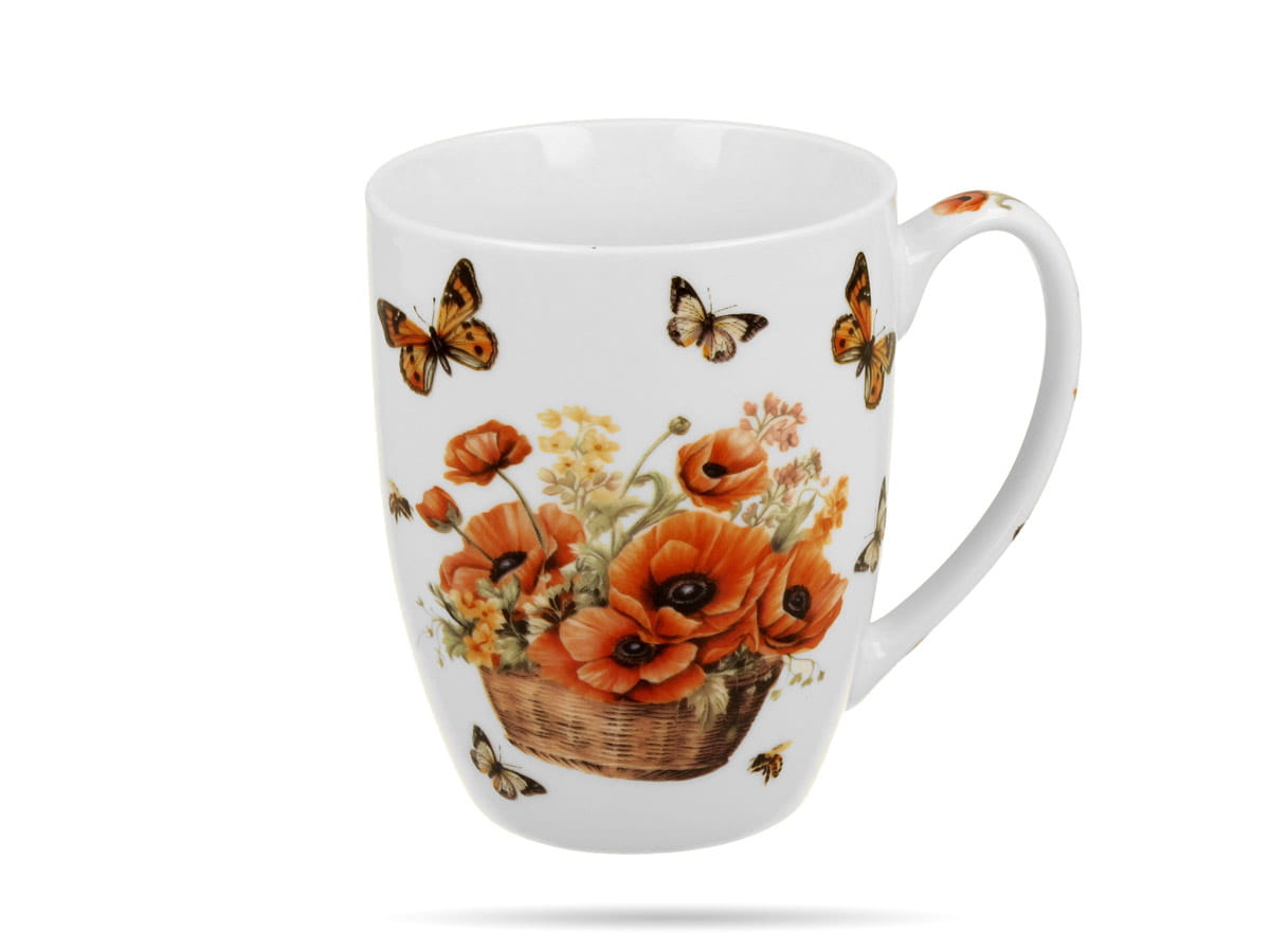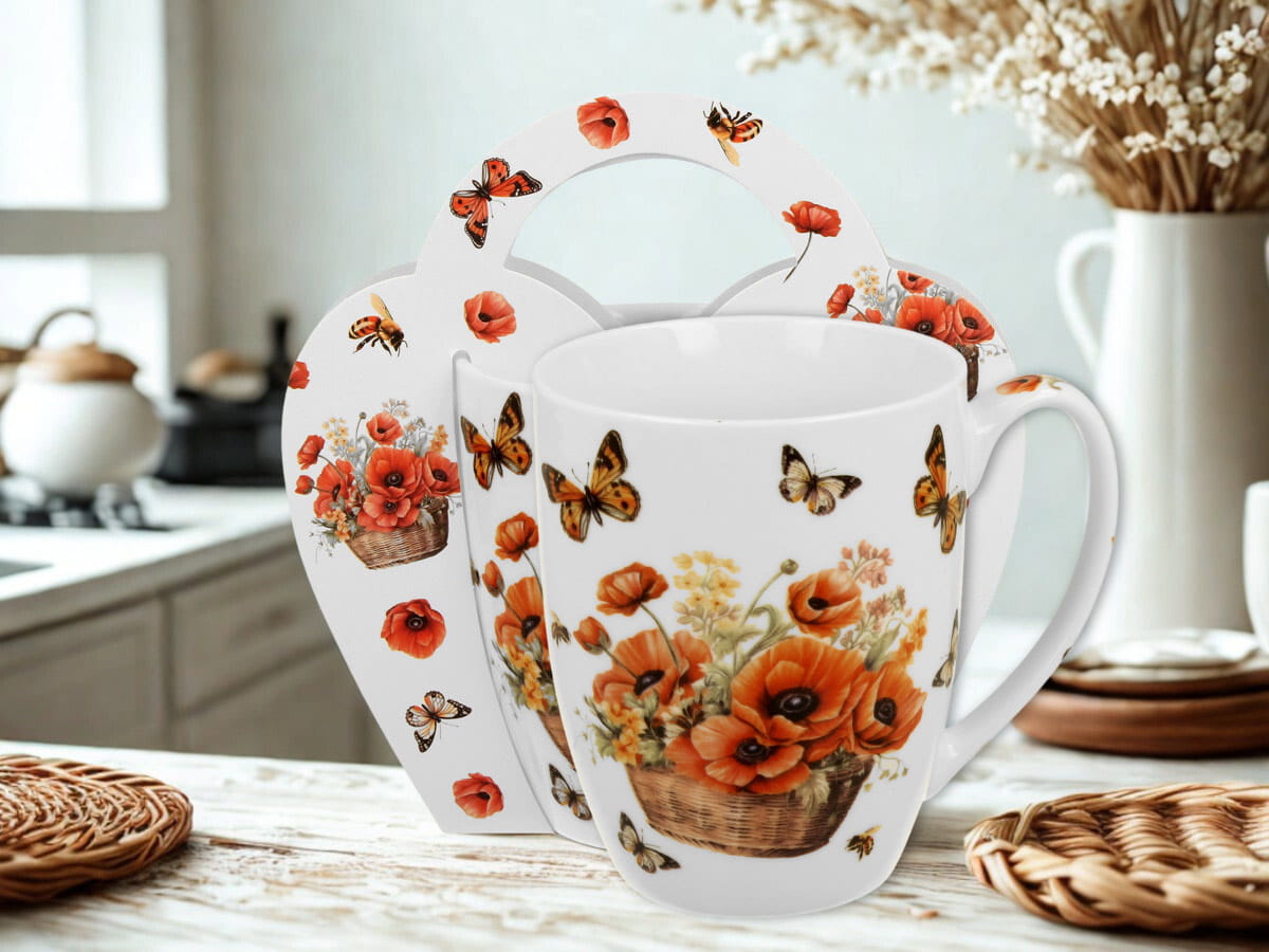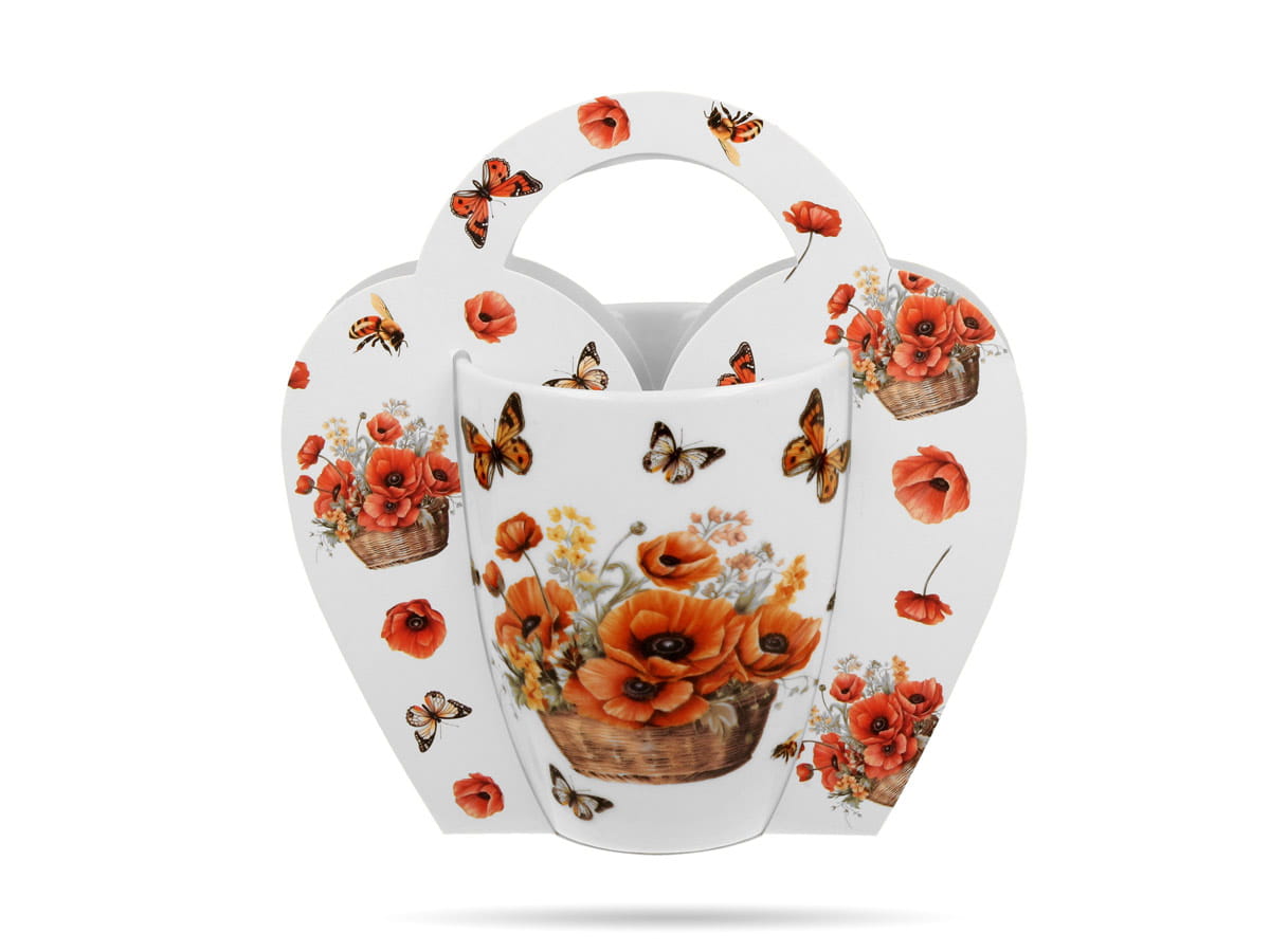 Kubek w koszyczku Kosze kwiatów Maki 350 ml porcelana na prezent DUO
