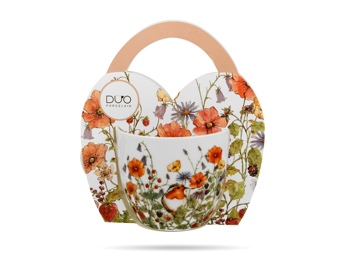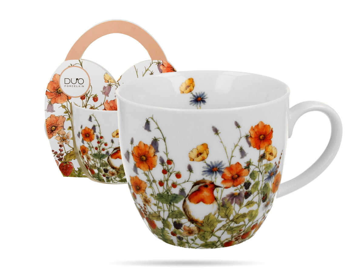 Kubek w koszyczku Wild Bird Dziki Ptak 460 ml porcelana na prezent DUO