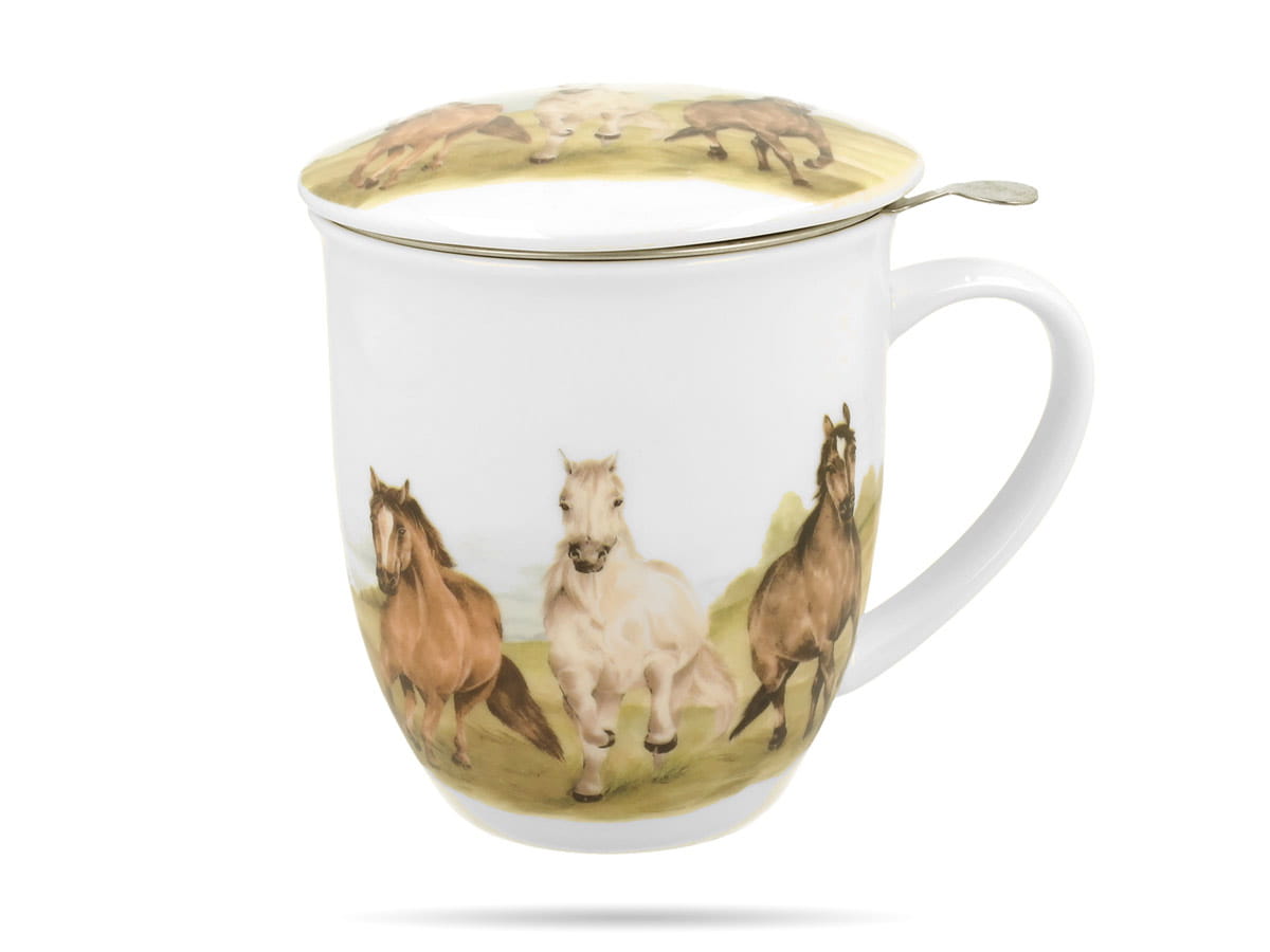 Kubek porcelanowy z zaparzaczem z kolekcji Świat Zwierząt – KONIE W GALOPIE od marki DUO.