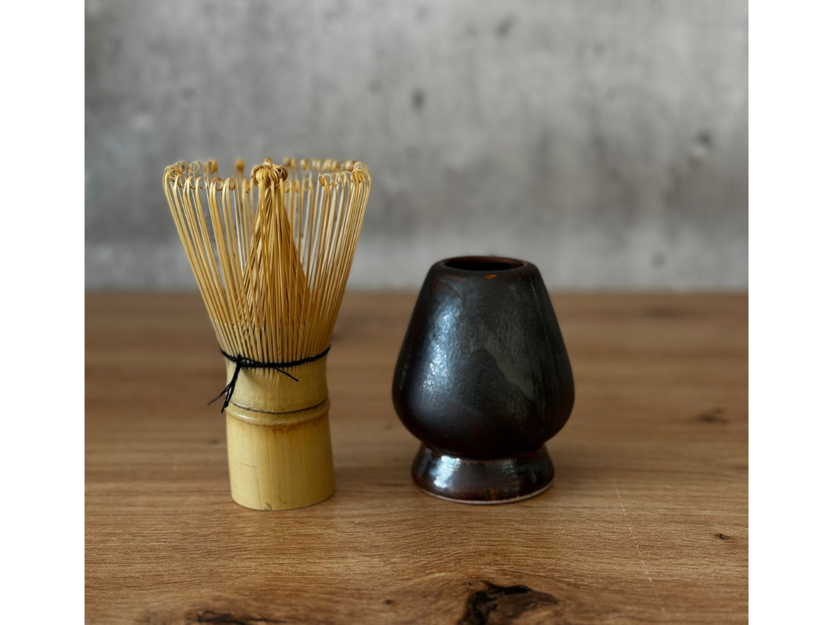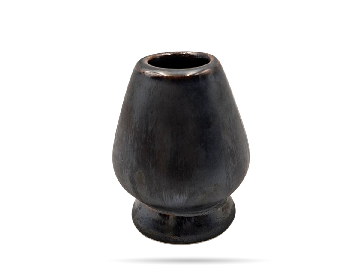 Zadbaj o swoją miotełkę Chasen! Ceramiczna podstawka Kusenaoshi w eleganckim kolorze Hematytu to niezbędny element zestawu do matchy. Pomaga utrzymać kształt bambusowej miotełki, zapobiegając odkształcaniu się jej delikatnych wąsów.
