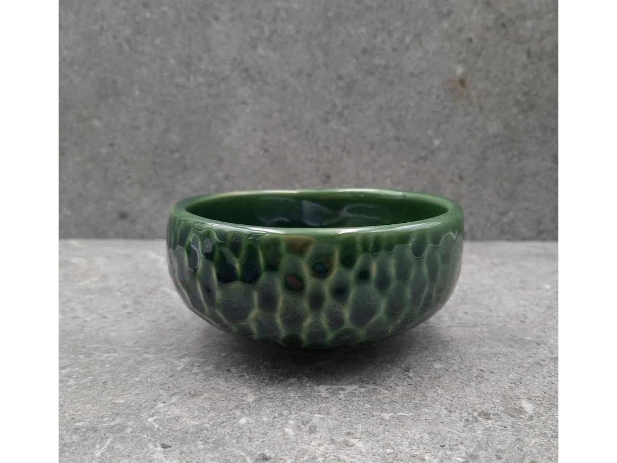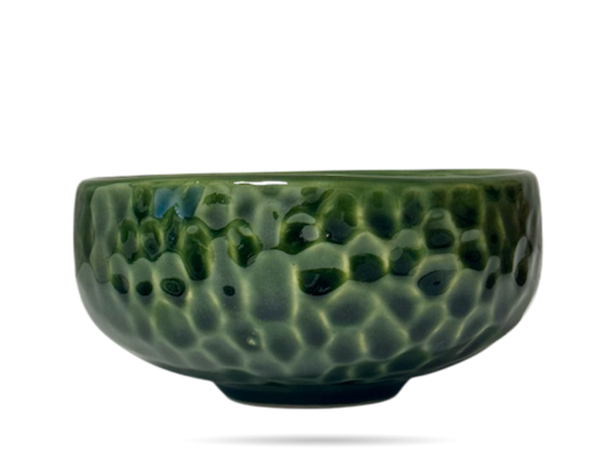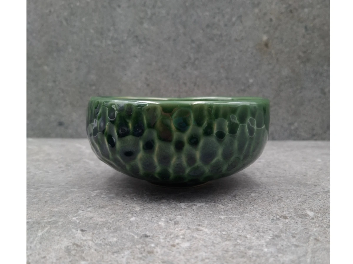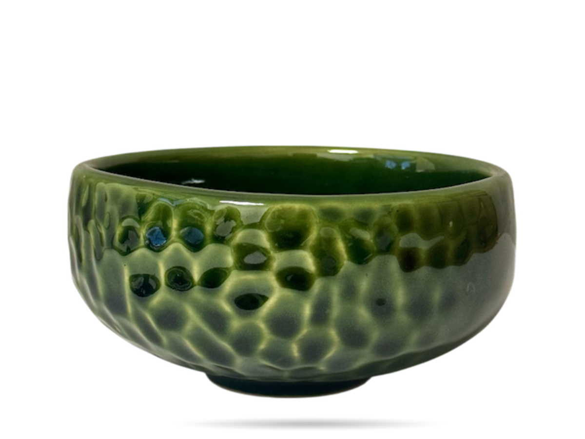 Elegancka, zielona czarka do herbaty matcha (Matchawan) o pojemności 380 ml. Wykonana w polskiej manufakturze Kera Ceramika, łączy tradycyjny japoński kształt z nowoczesnym wzorem "Plaster Miodu". Idealnie szerokie dno pozwala na swobodne użycie bambusowej miotełki (Chasen), a wysoka jakość szkliwionej ceramiki gwarantuje trwałość i łatwość czyszczenia.