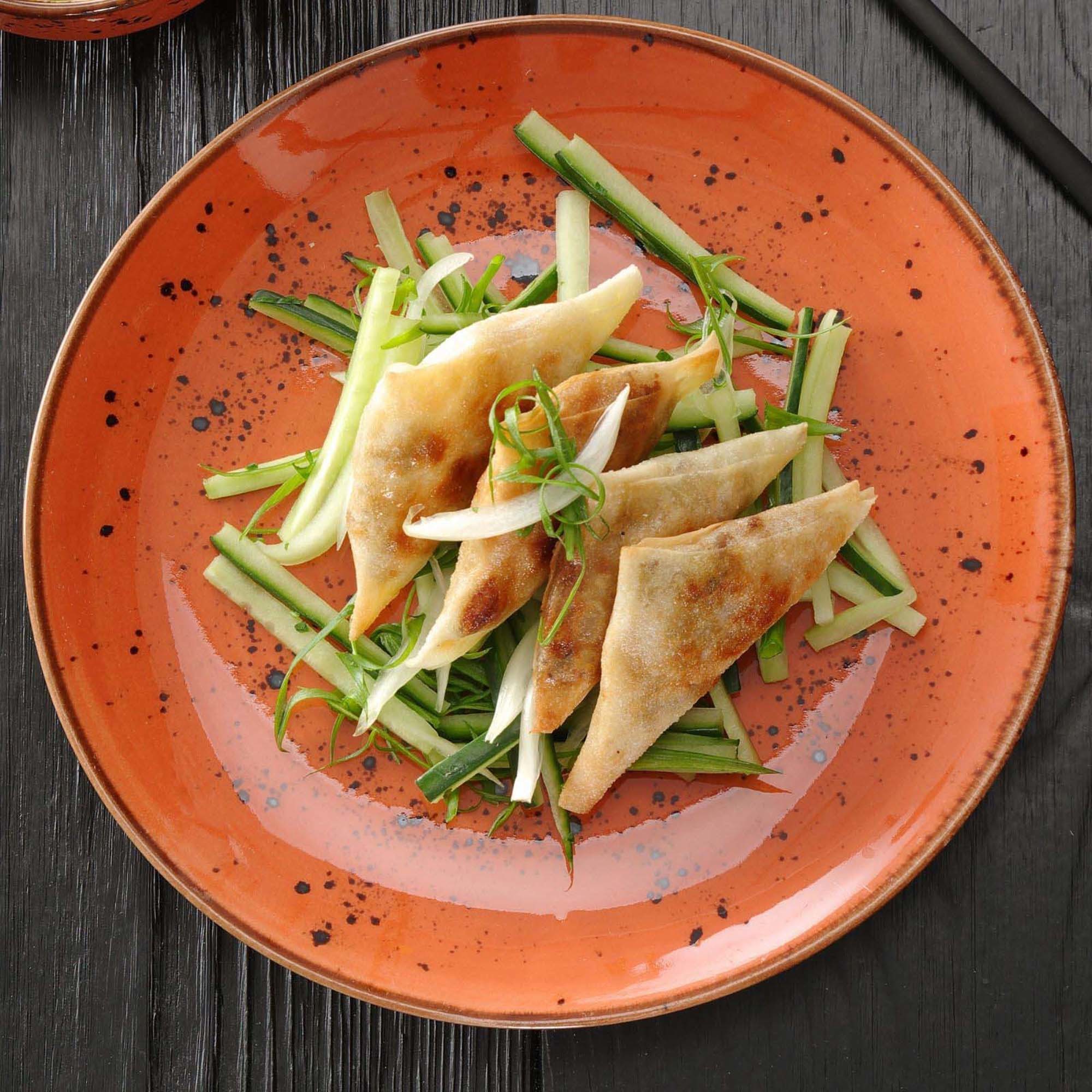 Bogata kolekcja ręcznie zdobionej porcelany w czterech soczystych kolorach. Dopasuj elementy pomarańczowe, niebieskie, szare i oliwkowe, aby uzyskać unikalny i zaskakujący wygląd stołu, a jedzenie będzie prezentować się tak samo dobrze, jak smakuje. Zastawa wytrzymała i odporna, zaprojektowana tak, aby wytrzymać trudy użycia w profesjonalnej kuchni