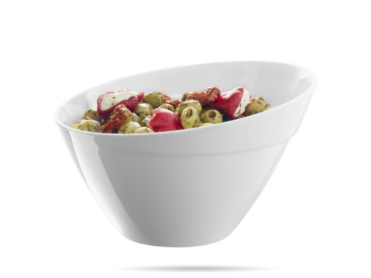 Stylowa miska Balance APS z białej melaminy o pojemności 2,5 L. Gładka powierzchnia i lekko skośny kształt podkreślają elegancję potraw. Lekka, trwała i bezpieczna w zmywarce – idealna do bufetu, restauracji i cateringu.