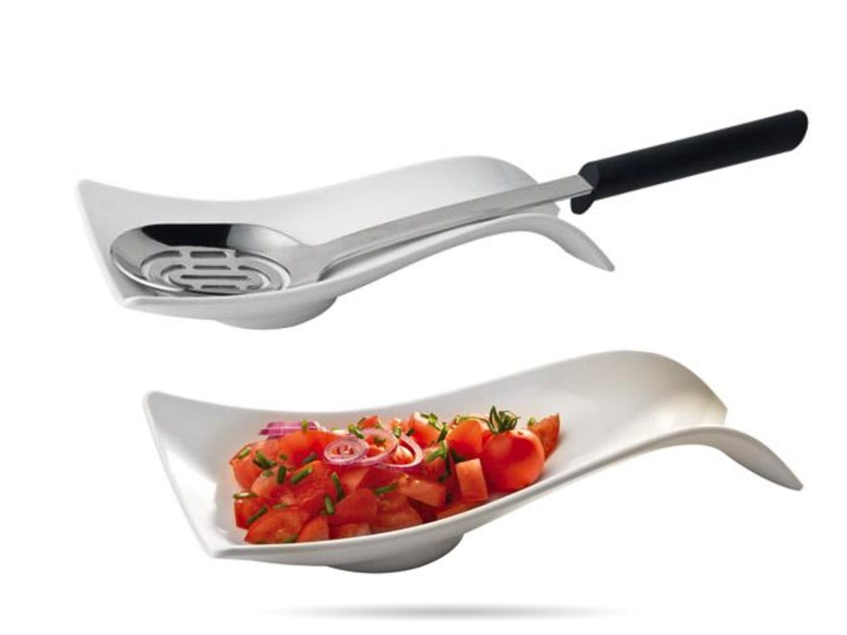 Naczynie Smart Wave APS o ciekawym kształcie. Wygodna podstawka na łyżkę, a także świetne naczynie na przekąski i przystawki.