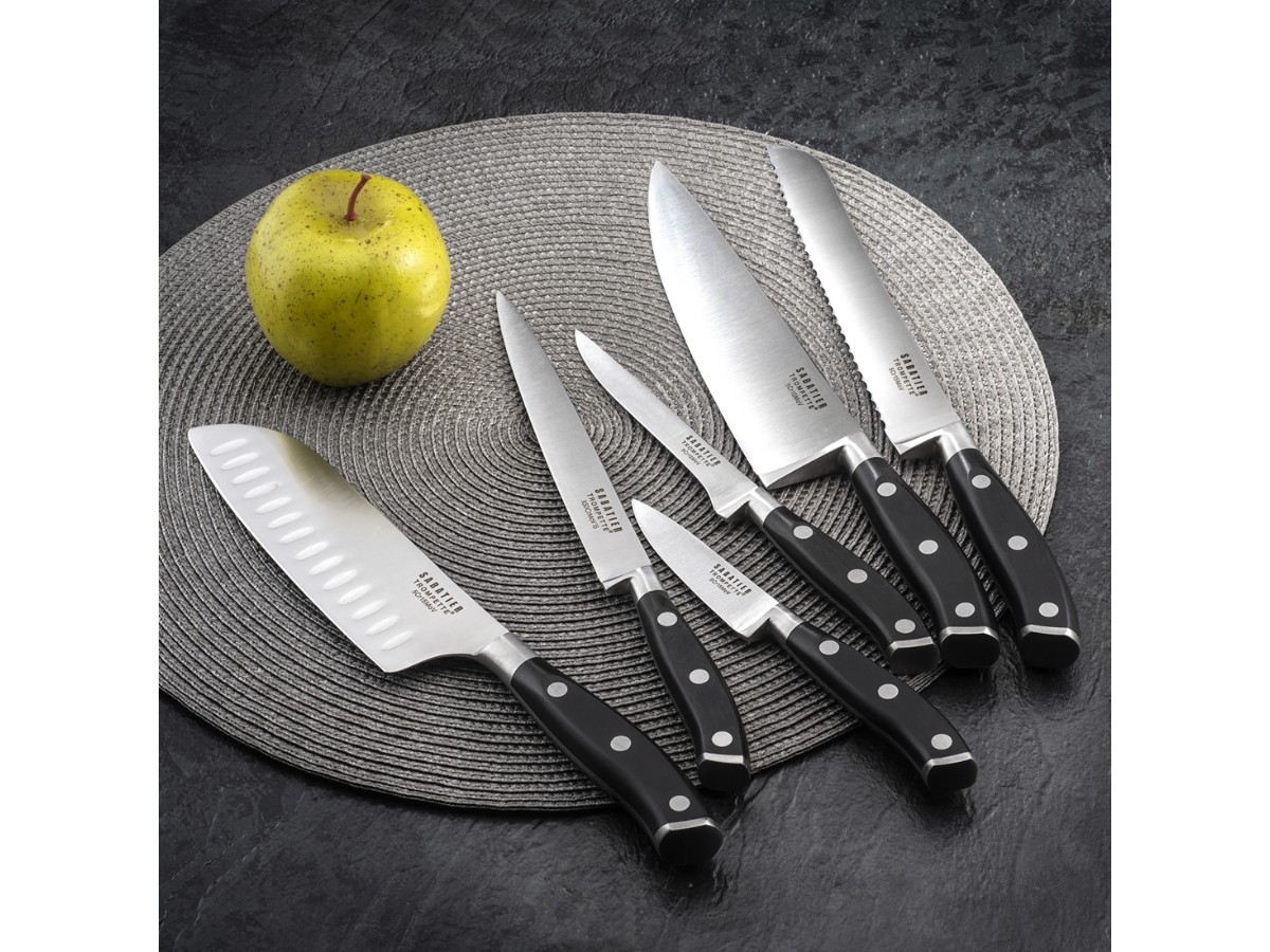 Profesjonalny nóż do mięsa Vulcano SABATIER TROMPETTE AMEFA to niezawodne narzędzie, które łączy perfekcyjne wykonanie z eleganckim designem. Wyposażony w ostrze o długości 18 cm, wykonane z wysokogatunkowej stali nierdzewnej 50CrMoV15, gwarantuje wyjątkową ostrość, trwałość i odporność na korozję – niezbędne cechy w każdej profesjonalnej kuchni.
