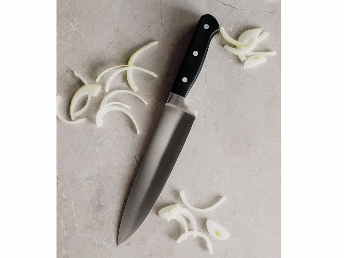 Profesjonalny nóż szefa kuchni Justcut TOMGAST 20 cm to uniwersalne narzędzie kuchenne, które sprawdzi się zarówno do codziennego gotowania, jak i w profesjonalnej gastronomii.