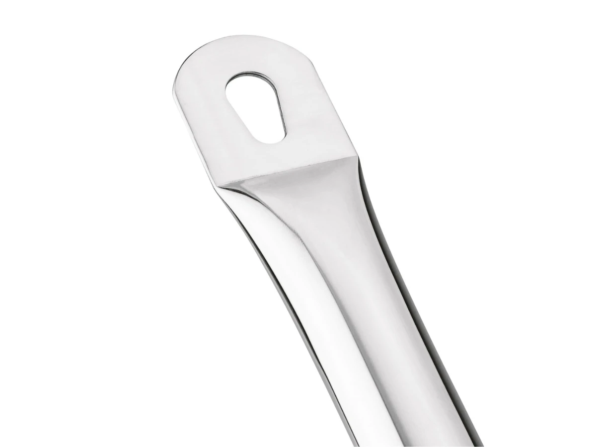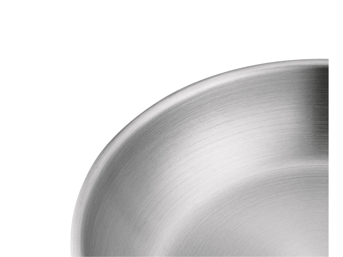 Kluczowym elementem jest 5-milimetrowe dno Impact Bonding, które gwarantuje równomierną dystrybucję ciepła i kompatybilność z każdą kuchenką: indukcyjną, gazową, elektryczną i ceramiczną. Patelnia bezpiecznie znosi zapiekanie w piekarniku do 220°C oraz mycie w zmywarce, co realnie oszczędza czas w kuchni. Wielopunktowo spawany, stalowy uchwyt nie nagrzewa się i zapewnia pewny chwyt nawet podczas wielogodzinnego smażenia.