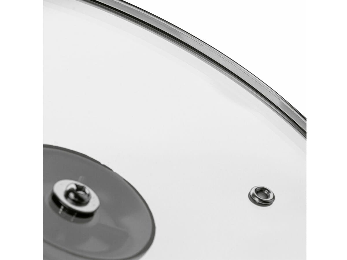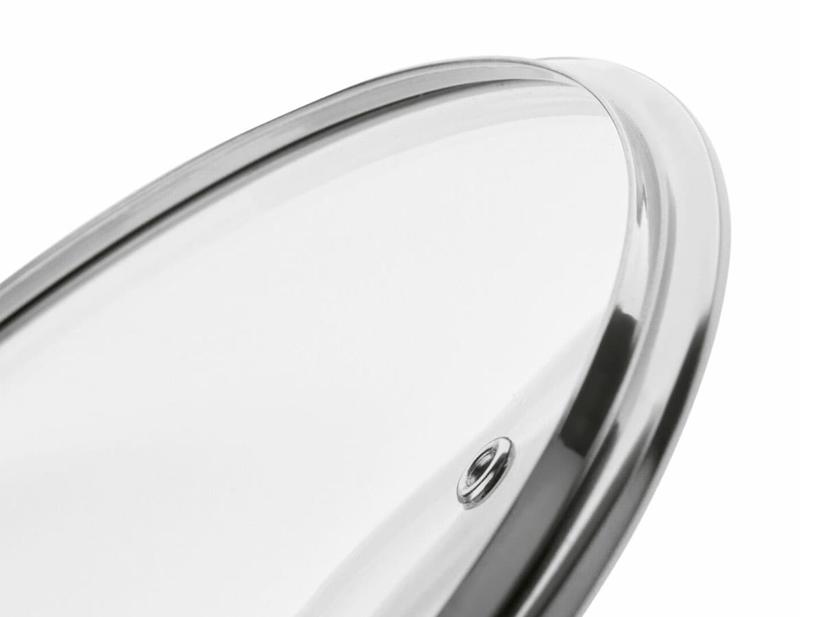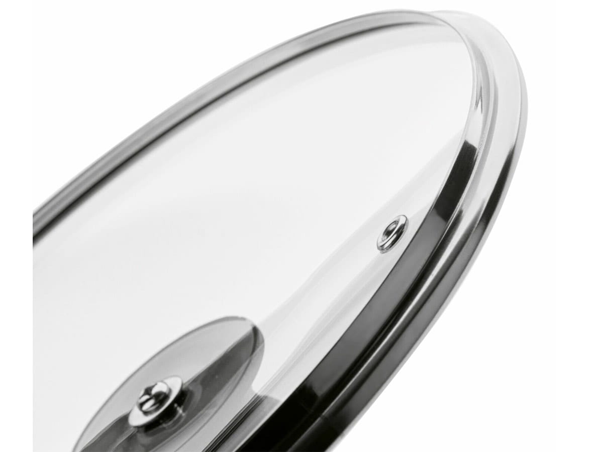 Wykonana z transparentnego szkła żaroodpornego, zapewnia pełną kontrolę nad przygotowywanym daniem bez konieczności podnoszenia pokrywki. Metalowy rant chroni brzegi przed wyszczerbieniem, a odpowietrznik pary pozwala na bezpieczne i wygodne duszenie potraw.