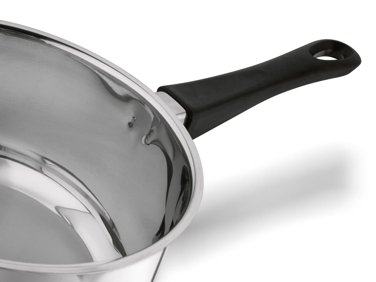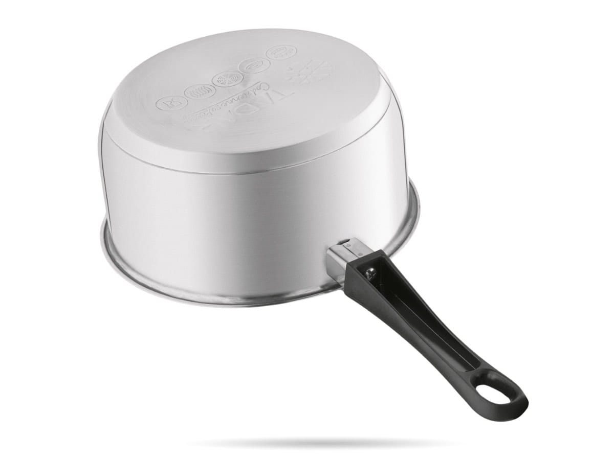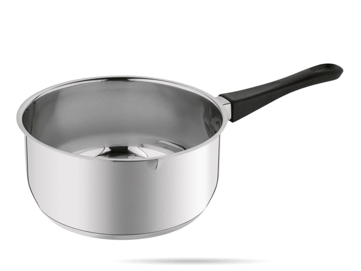 Rondel na indukcję Tadar. Stalowy rondel idealnie sprawdza się do przygotowywania różnych potraw, podgrzania niewielkiej ilości jedzenia, wody czy mleka. Podwójne dno zapobiega przywienianiu, poręczny uchwyt zapewnia wygodę. Łatwy w czyszczeniu, można stosować na każdym rodzaju kuchenki. Dostępny w kilku rozmiarach.