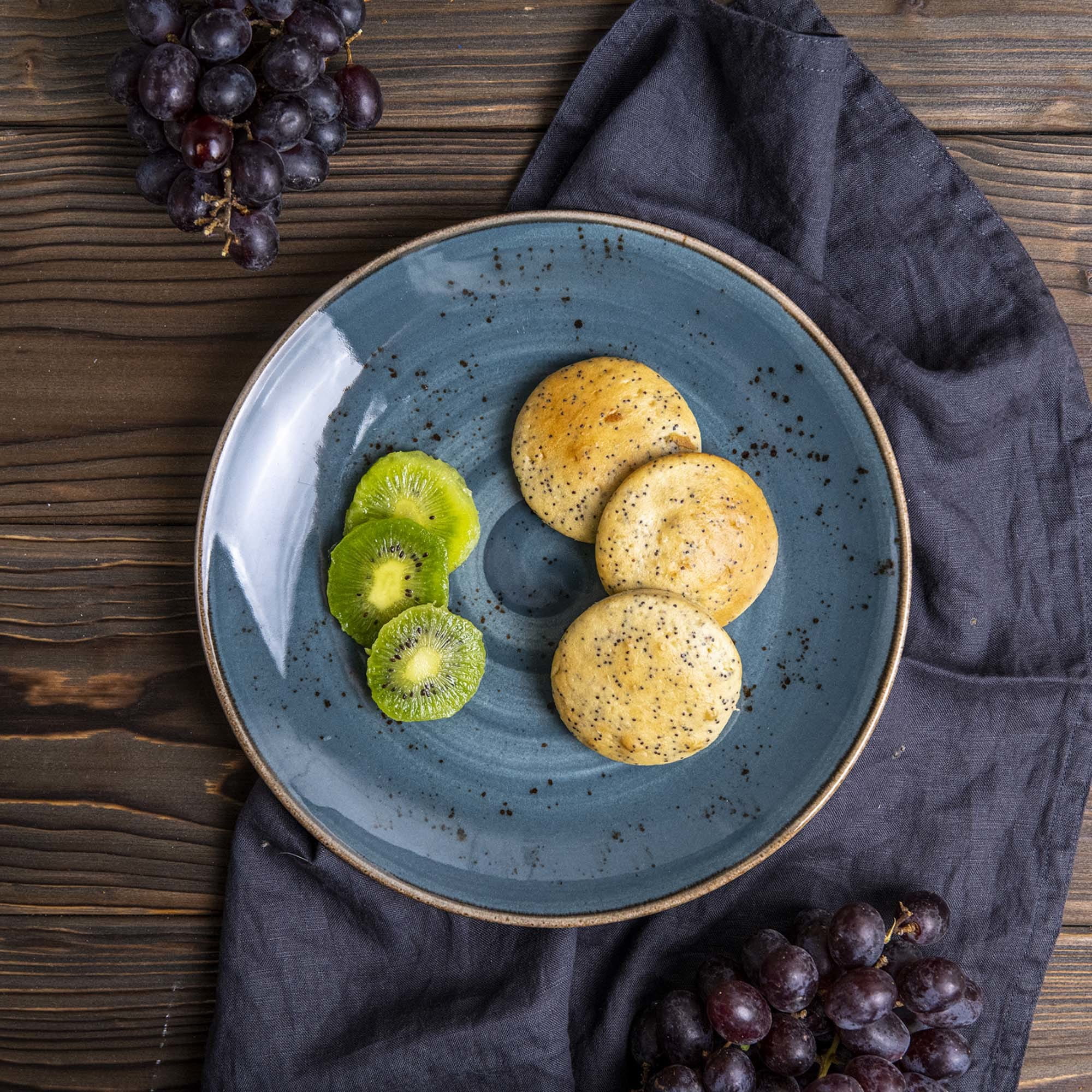 Bogata kolekcja recznie zdobionej porcelany w pięciu soczystych kolorach. Dopasuj elementy kremowe, pomarańczowe, niebieskie, szare i oliwkowe, aby uzyskac unikalny i zaskakujący wygląd stołu, a jedzenie będzie prezentować się tak samo dobrze, jak smakuje. Zastawa wytrzymała i odporna, zaprojektowana tak, aby wytrzymac trudy użytkowania w profesjonalnej kuchni. Materiał: porcelana typu Vitrified Temperatura wypalania: 1050° i 1400°C Odpornosc na temperature: 180°C