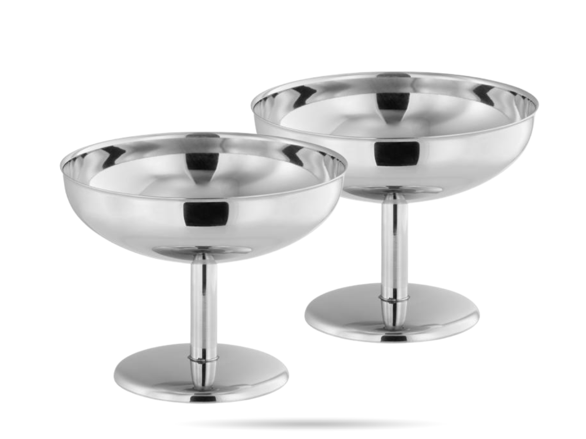 Stalowe pucharki do lodów APS Frigo 180 ml – elegancki zestaw 2 pucharków ze stali nierdzewnej.