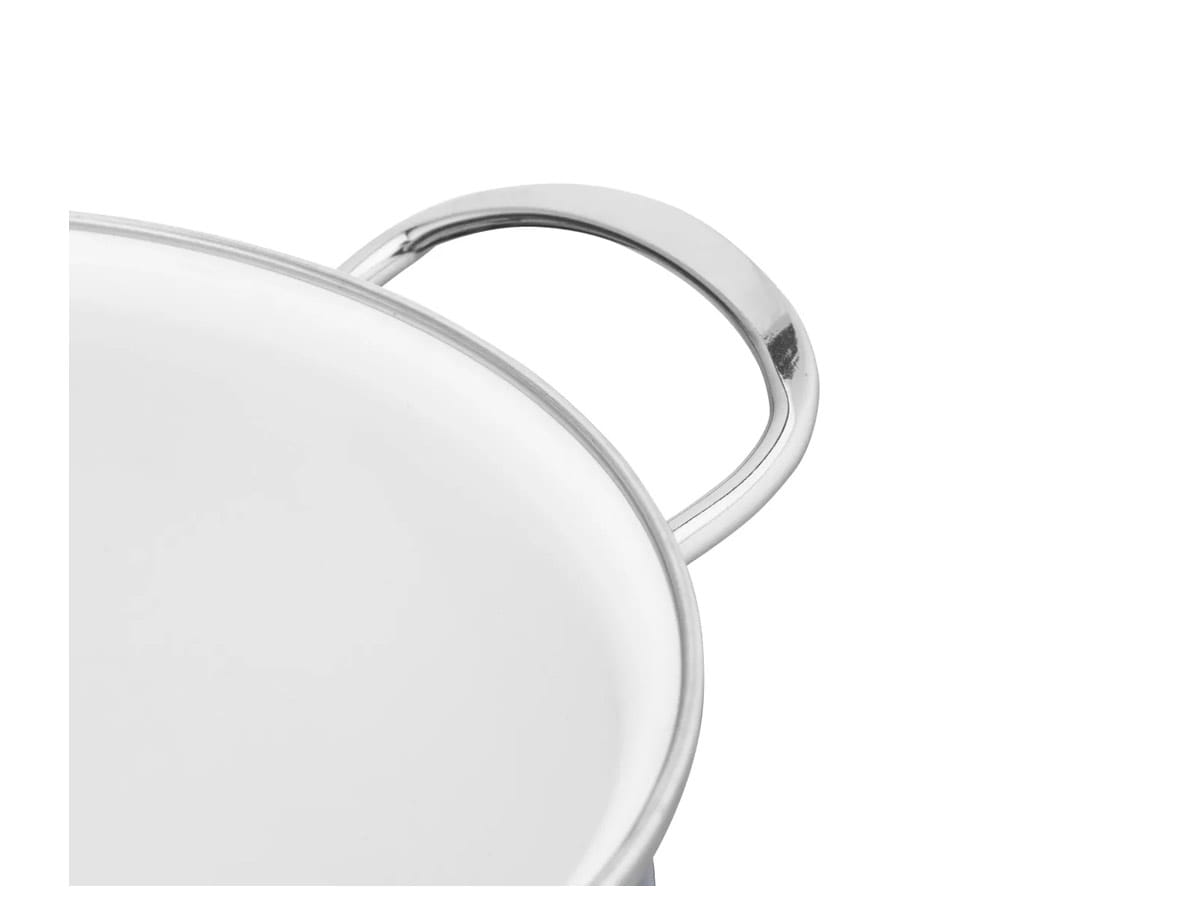 - Nierdzewne okucia brzegów – chronią emalię przed odpryskami i zwiększają trwałość.
