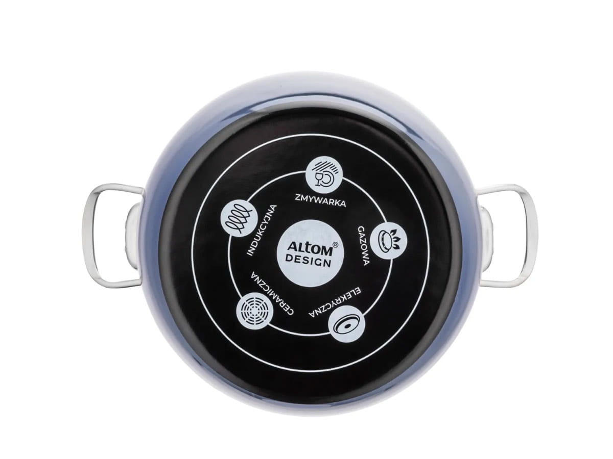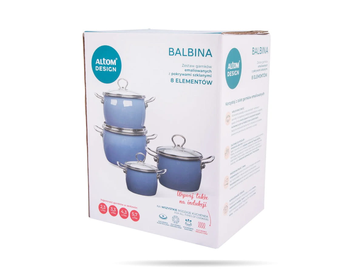 Garnki emaliowane Balbina marki ALTOM (zestaw 4 sztuki) to połączenie trwałości, funkcjonalności i ponadczasowego stylu. Wykonane z wysokiej jakości stali węglowej o grubości 1,2 mm i pokryte dwoma warstwami odpornej emalii (łącznie 1,5 mm grubości), zapewniają równomierne rozprowadzanie ciepła oraz długą żywotność produktu. Niebieski kolor i nowoczesna linia sprawiają, że garnki świetnie komponują się z każdą aranżacją kuchni.