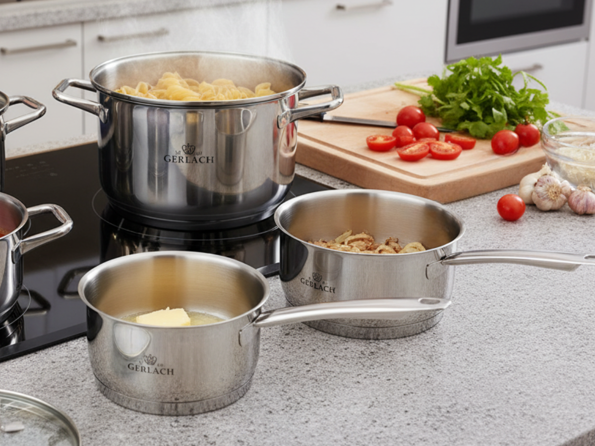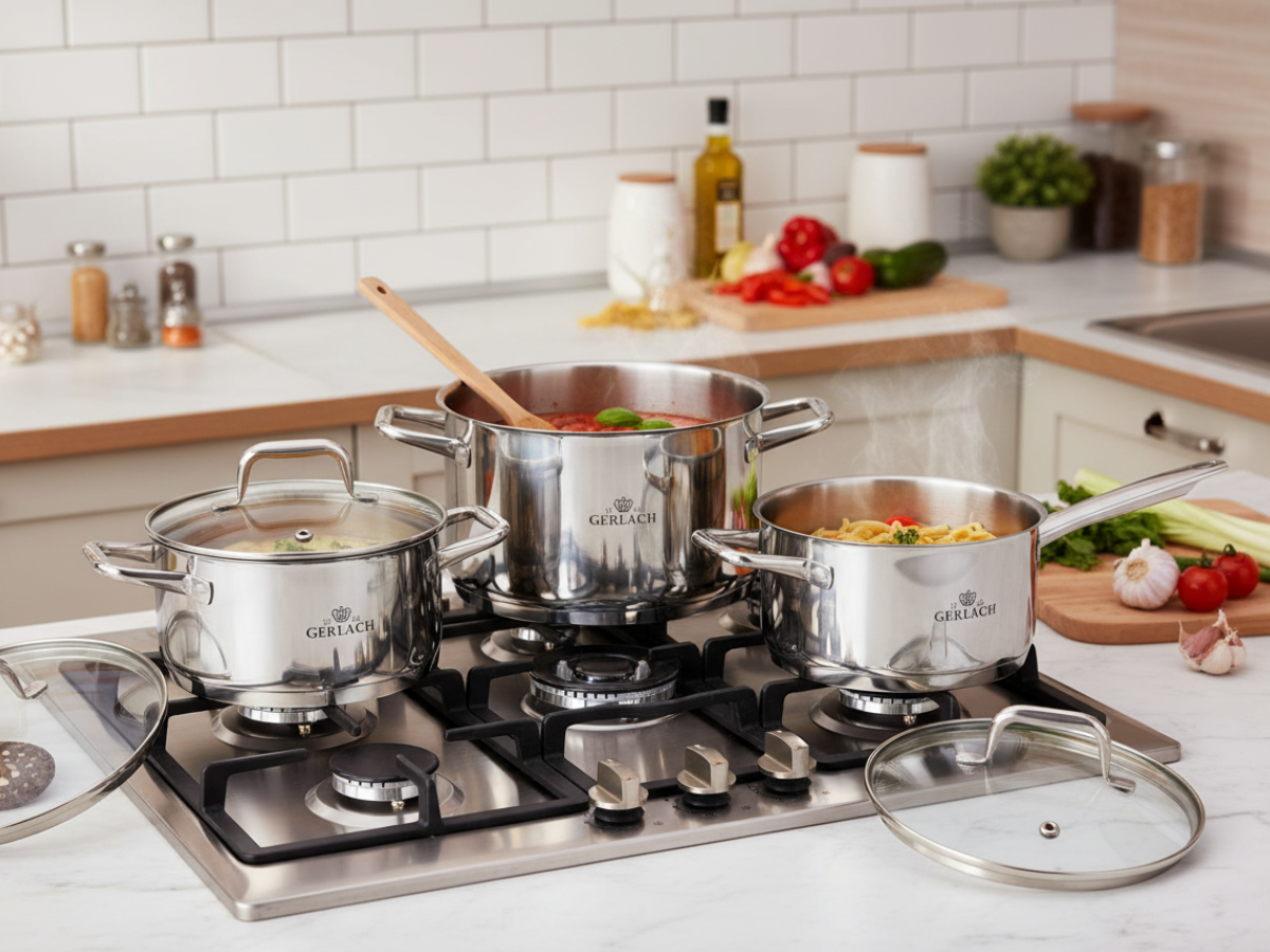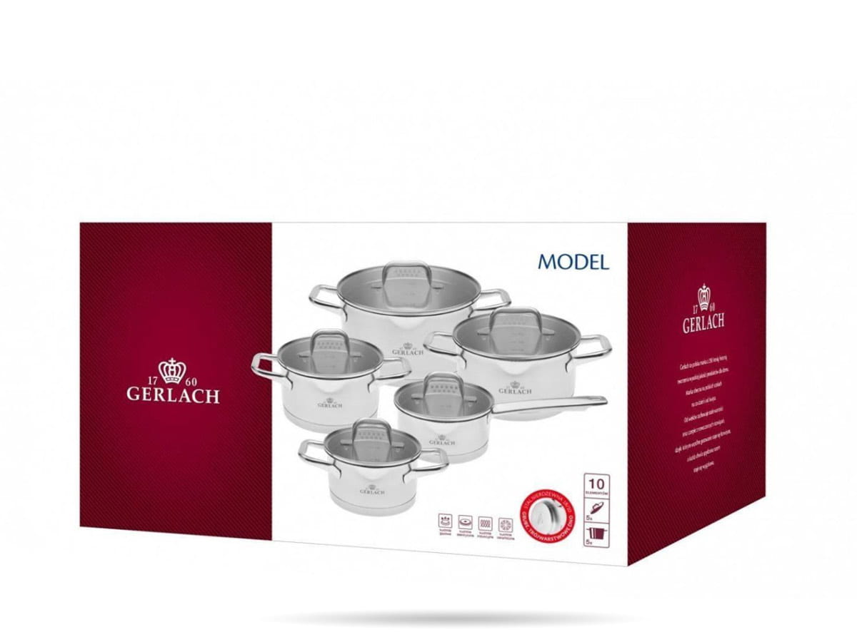 Elegancki i trwały zestaw garnków GERLACH 10 el. wykonany ze stali nierdzewnej 18/10 to połączenie funkcjonalności i wysokiej jakości. Idealny wybór do nowoczesnej kuchni – sprawdzi się zarówno na kuchenkach indukcyjnych, jak i gazowych, ceramicznych czy elektrycznych.