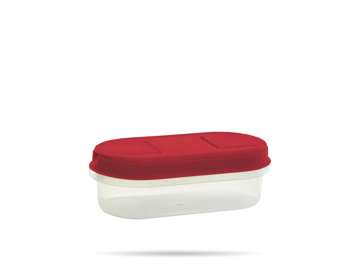 Pojemnik występuje w kilku kolorach pokrywy i 3 rozmiarach (0,5l / 1,2l / 2,4l)