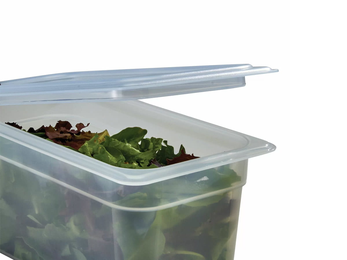 Pokrywa do pojemnika gastronomicznego, który jest niezbędny do ekspozycji i przechowywania żywności. Wykonana z bezpiecznego polipropylenu, łatwa w czyszczeniu, można ją bezpiecznie myć w zmywarce i przechowywać w lodówce i zamrażarce.