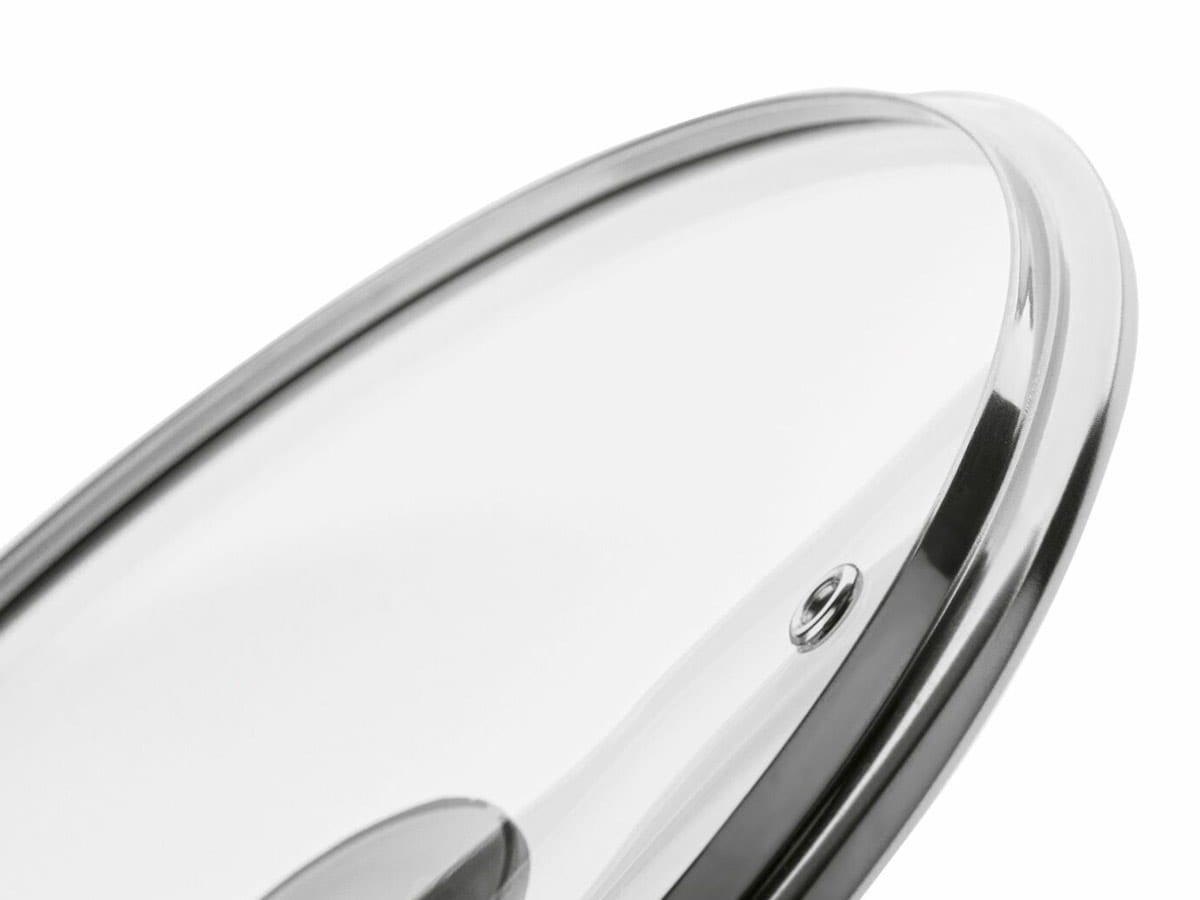 - solidna konstrukcja - pokrywę wykonano ze szkła żaroodpornego, dzięki temu jest trwała i odporna na uszkodzenia oraz zmiany temperatur, stalowy rant chroni przed wyszczerbieniem brzegów