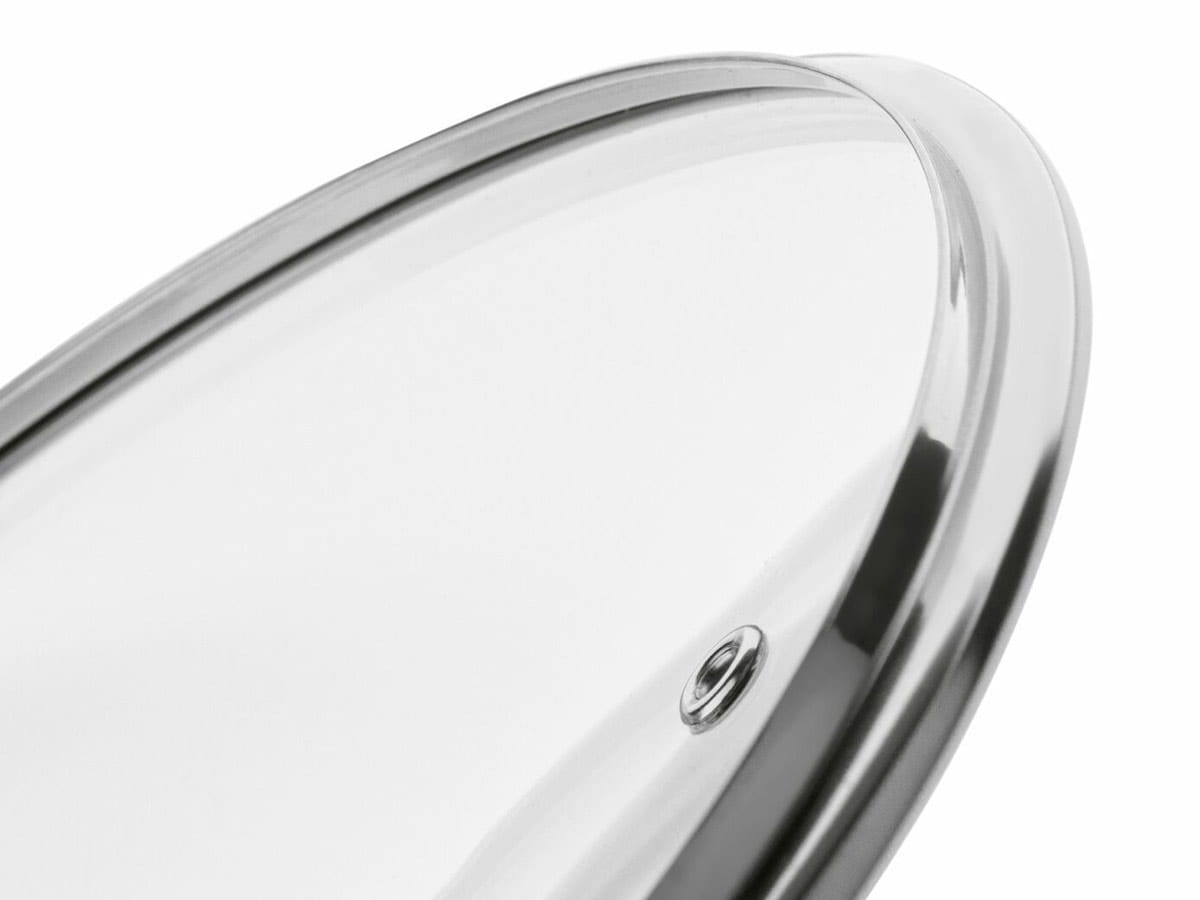 - solidna konstrukcja - pokrywę wykonano ze szkła żaroodpornego, dzięki temu jest trwała i odporna na uszkodzenia oraz zmiany temperatur, stalowy rant chroni przed wyszczerbieniem brzegów