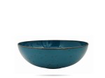 Salaterka o średnicy 23,5 cm z serii Alumina Cottage Laguna polskiej firmy Porcelana Bogucice. Seria Cottage Laguna to linia porcelany w głębokim, turkusowym kolorze, z nieregularnym, nakrapianym wzorem. Takie wzornictwo dodaje charakteru i niepowtarzalnego wyglądu. Jakość porcelany pozwala na bezpieczne mycie jej w zmywarkach, a także na stosowanie jej w kuchenkach mikrofalowych.