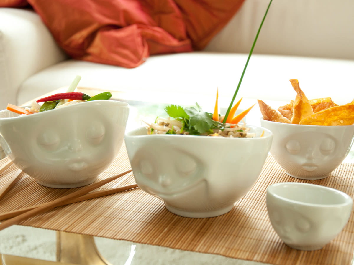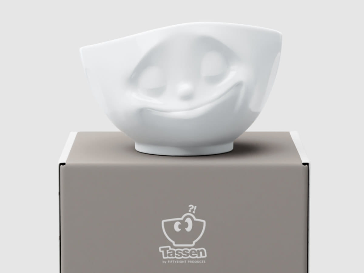 Salaterka 58Products. Porcelanowa miseczka do sałatek, zup czy płatków śniadaniowych. Tassen to linia naczyń z zabawnymi, wypukłymi buźkami. Oryginalny pomysł na prezent.
