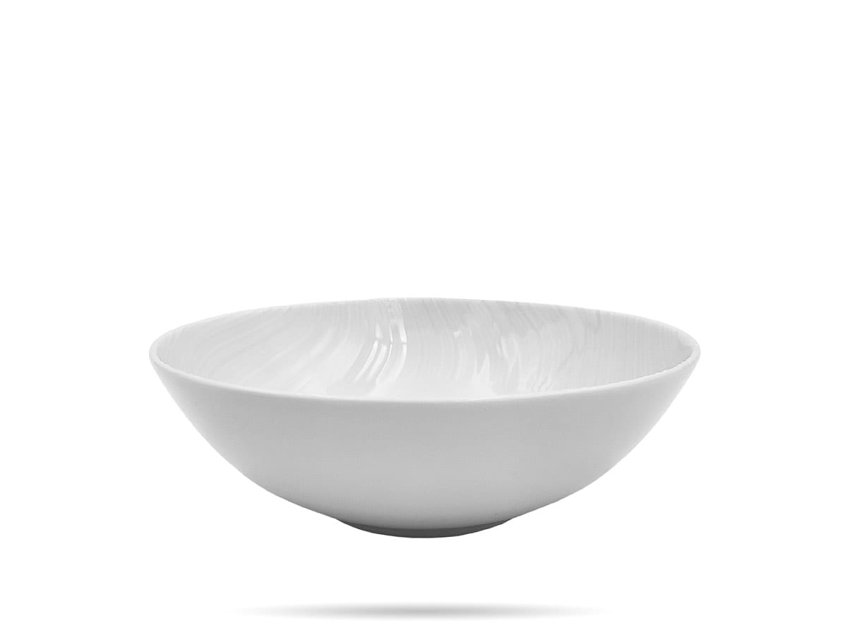 Salaterka o średnicy 21 cm z serii River firmy Lubiana. Seria River charakteryzuje się delikatnie wypukłym motywem fal na powierzchni. Motyw jest niezwykle subtelny i delikatny, a jednocześnie dodaje charakteru klasyce białej porcelany.