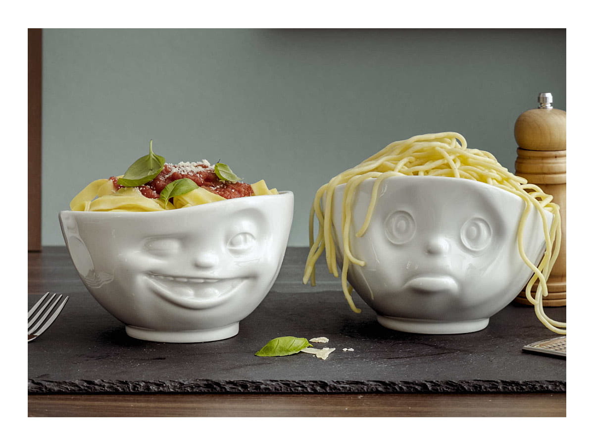 Salaterka 58Products. Porcelanowa miseczka do sałatek, zup czy płatków śniadaniowych. Tassen to linia naczyń z zabawnymi, wypukłymi buźkami. Oryginalny pomysł na prezent.