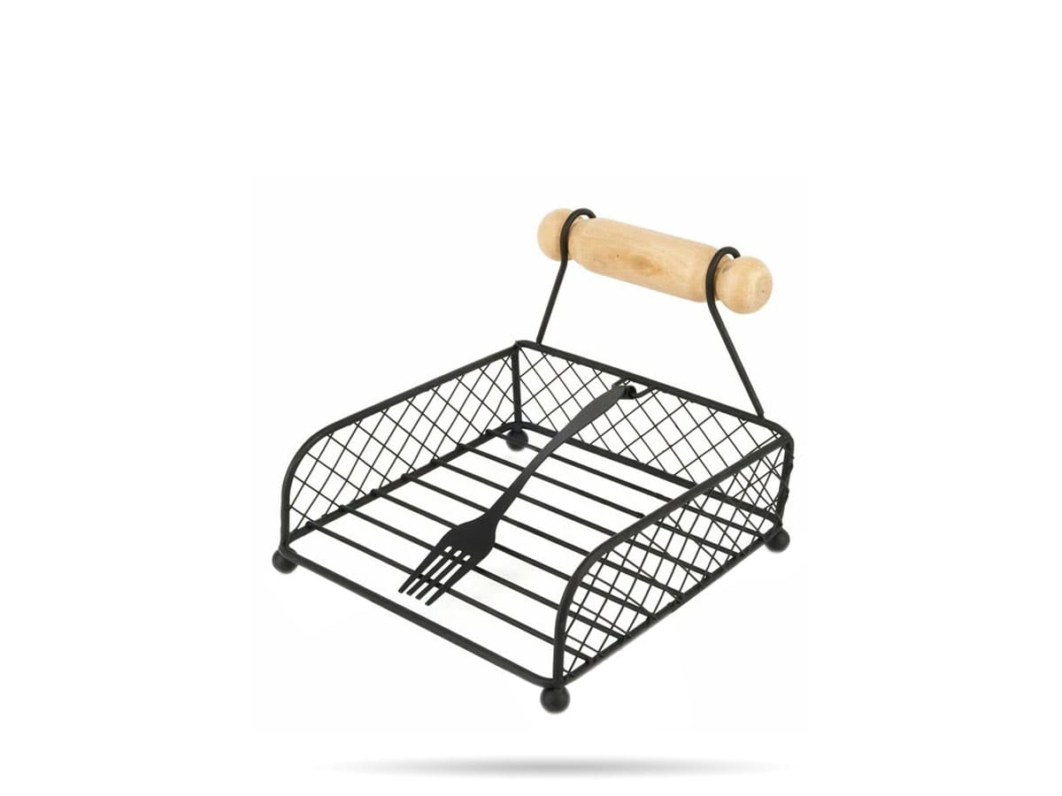Drewniany uchwyt pozwala na wygodne przenoszenie serwetnika, a ozdobne dociążenie w kształcie widelca pozwala na wyjęcie jednej serwetki. Cztery, szeroko rozstawione okrągłe nóżki serwetnika sprawiają, że jest stabilny. Ciekawy i oryginalny design serwetnika przykuwa uwagę.