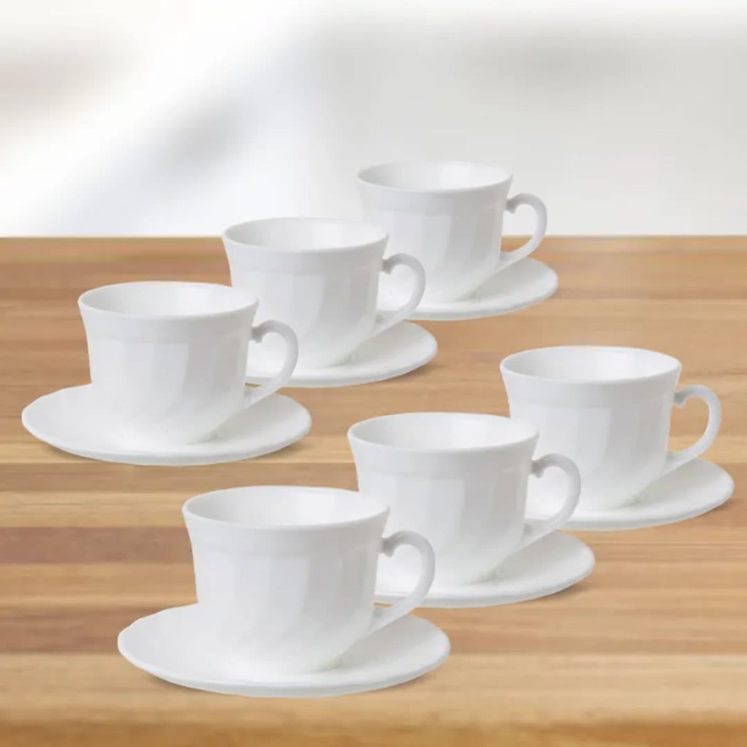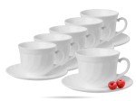 Serwis kawowy Trianon Luminarc. Serwis dla 6 osób 12 elementów. Trianon Luminarc to mocne i lekkie naczynia z białego szkła hartowanego. Zdobione delikatnym, wypukłym wzorem. Zestaw filiżanek ze spodkami, w których zaserwujesz kawę lub herbatę.