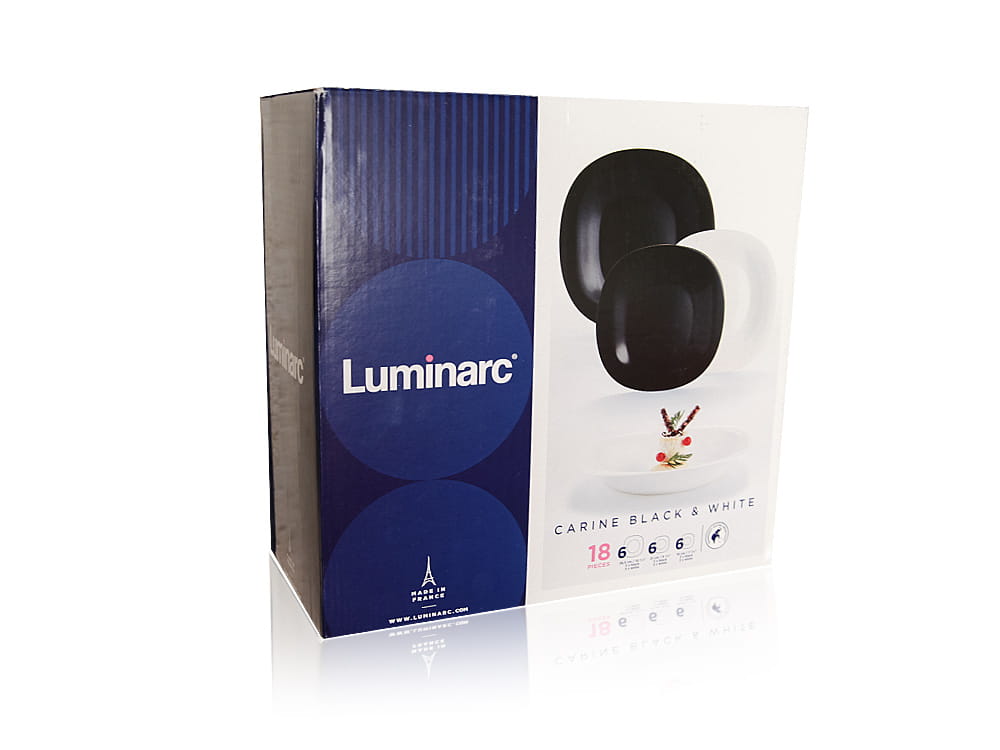 - Carine Luminarc można kupić u nas w formie gotowych serwisów, kompletów naczyń, a także jako talerze na sztuki, występuje w kilku kolorach: białym, czarnym, szarym, turkusowym i niebieskim