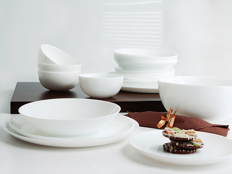 Diwali Luminarc to gładkie i lekkie naczynia w minimalistycznym stylu. Wykonane z mocnego szkła hartowanego świetnie sprawdzą się na co dzień. Komplet Diwali zawiera talerze deserowe, obiadowe płytkie i głębokie oraz dużą salaterkę - podasz na nich każdego rodzaju dania. Jeden zestaw - wiele korzyści.