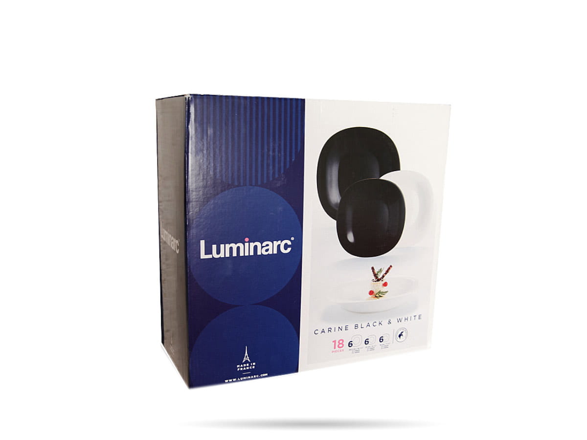 - Carine Luminarc można kupić u nas w formie gotowych serwisów, kompletów naczyń, a także jako talerze na sztuki, występuje w kilku kolorach: białym, czarnym, szarym, turkusowym i niebieskim