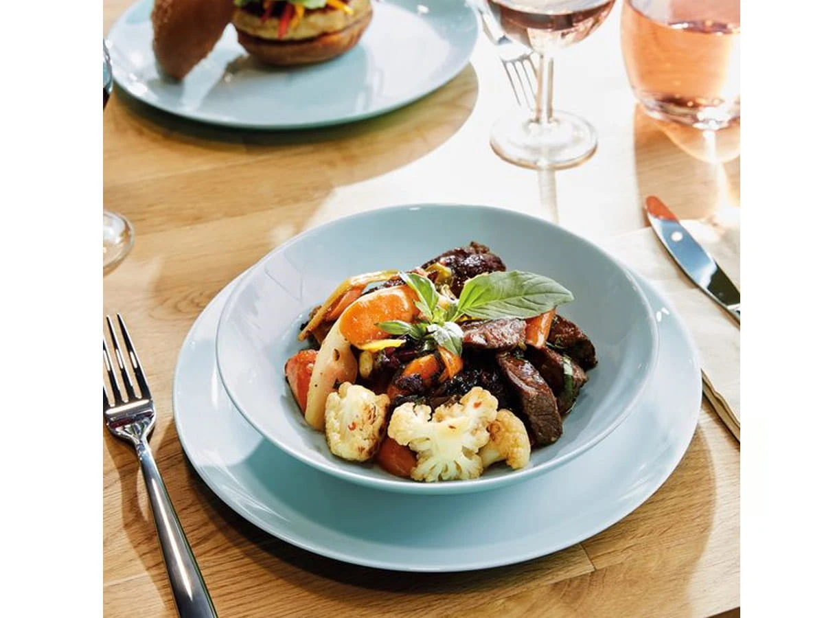 - minimalistyczny design - gładkie naczynia bez zdobień kompletny zestaw naczyń, dzięki któremu podasz cały wachlarz dań - desery, śniadania, kolacje i dania główne