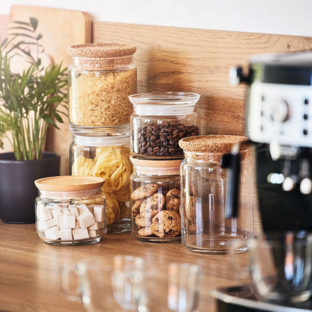 Szklane naczynia ze szczelnym zamknięciem sprawdzą się w każdej kuchni - można przechowywać w nich kasze, makarony, ciastka, bakalie i inne produkty z grupy suchej żywności. Estetyczny wygląd wkomponuje się w każdy wystrój kuchni.