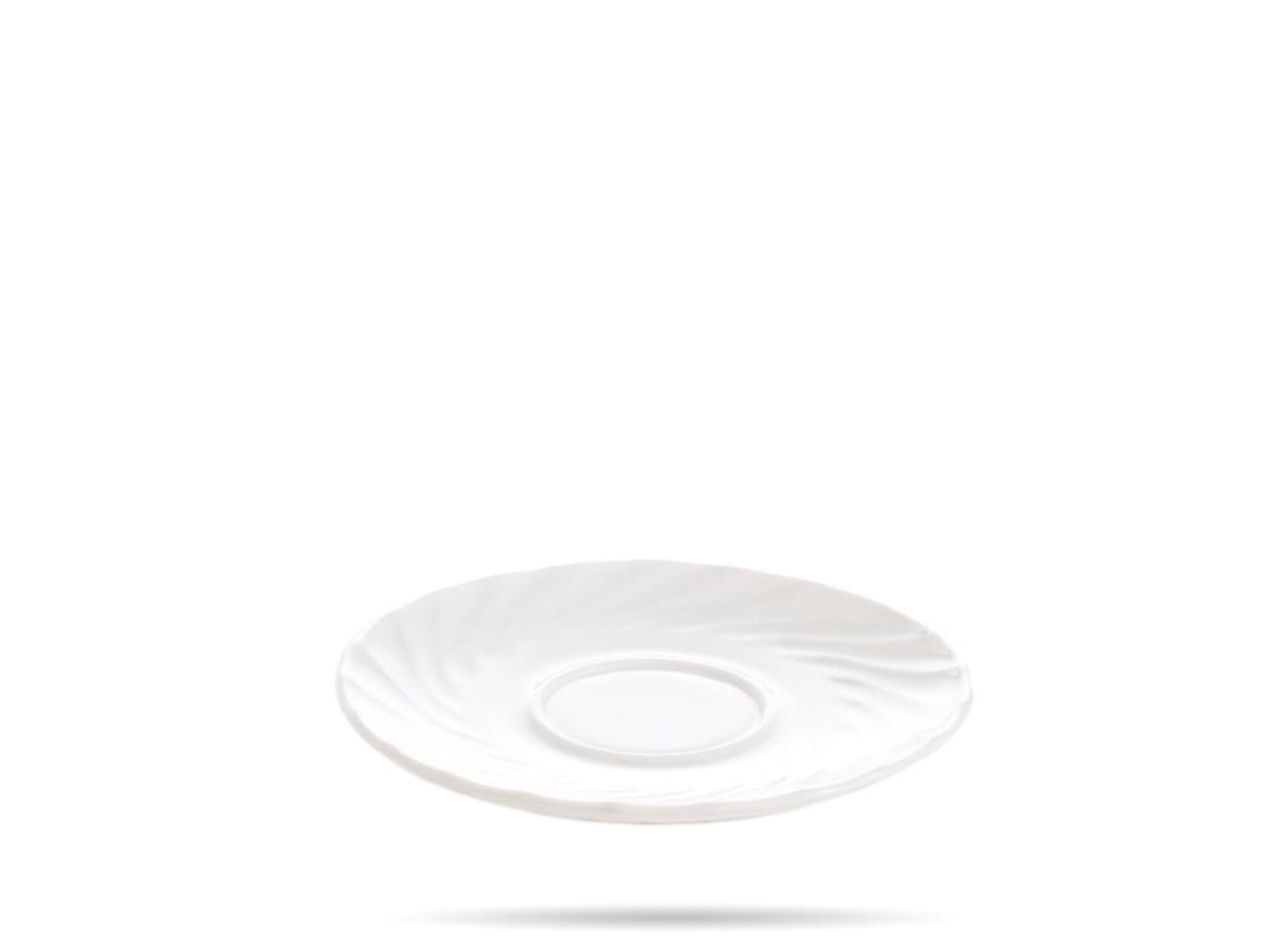 Spodek Trianon Luminarc. Spodek do filiżanki, mały talerzyk. Trianon Luminarc to mocne i lekkie naczynia z białego szkła hartowanego, zdobione delikatnym, wypukłym wzorem. Spodek do filiżanki Trianon Luminarc.
