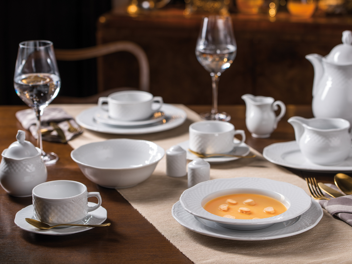 Spodek porcelanowy 16 cm LUBIANA Afrodyta. Do filiżanek 190 i 250 ml, zmywarka i mikrofala. Idealny do gastronomii.
