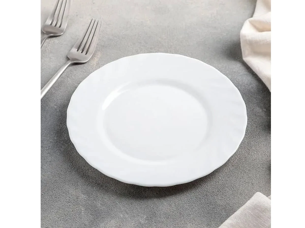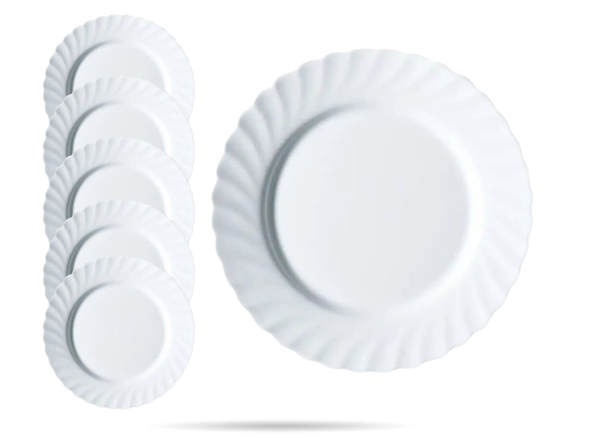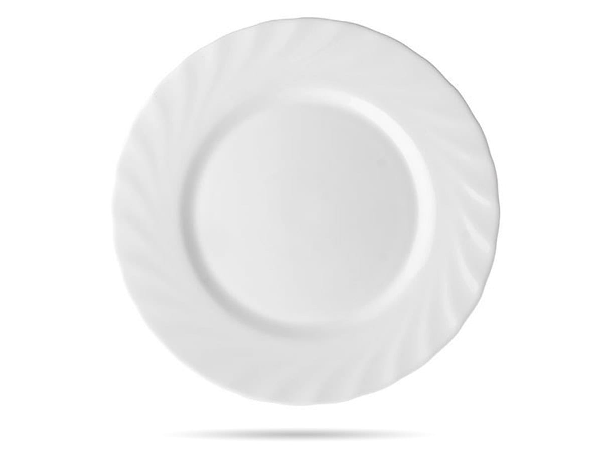 Talerze Trianon Luminarc. Małe talerze płytkie, talerze deserowe, talerze do dań mniejszych. Trianon Luminarc to mocne i lekkie naczynia z białego szkła hartowanego. Zdobione delikatnym, wypukłym wzorem. Talerze do domu i gastronomii.