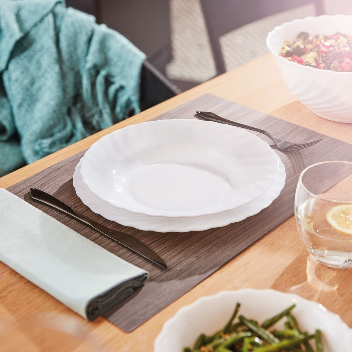 Trianon Luminarc to lekkie naczynia z delikatnym, wypukłym wzorem Wykonane z mocnego szkła hartowanego świetnie sprawdzą się na co dzień.