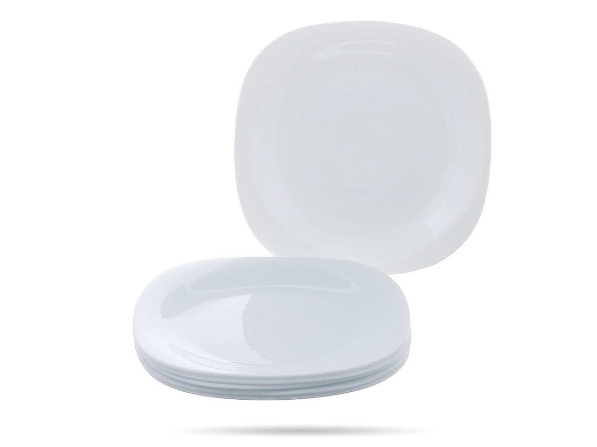 Talerz deserowy Bormioli Rocco. Mały talerz płytki, talerz śniadaniowy, talerz do dań mniejszych. Parma to gładkie, białe talerze ze szkła opal, są lekkie i wyjątkowo trwałe. Ciekawy kształt zaokrąglonego kwadratu i śnieżna biel atrakcyjnie wyeksponują serwowane dania.