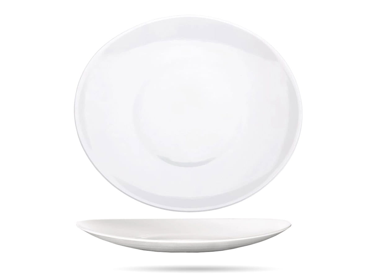 - ciekawy wygląd - lekko wypukły wzór na zewnętrznej stronie talerza, owalny kształt