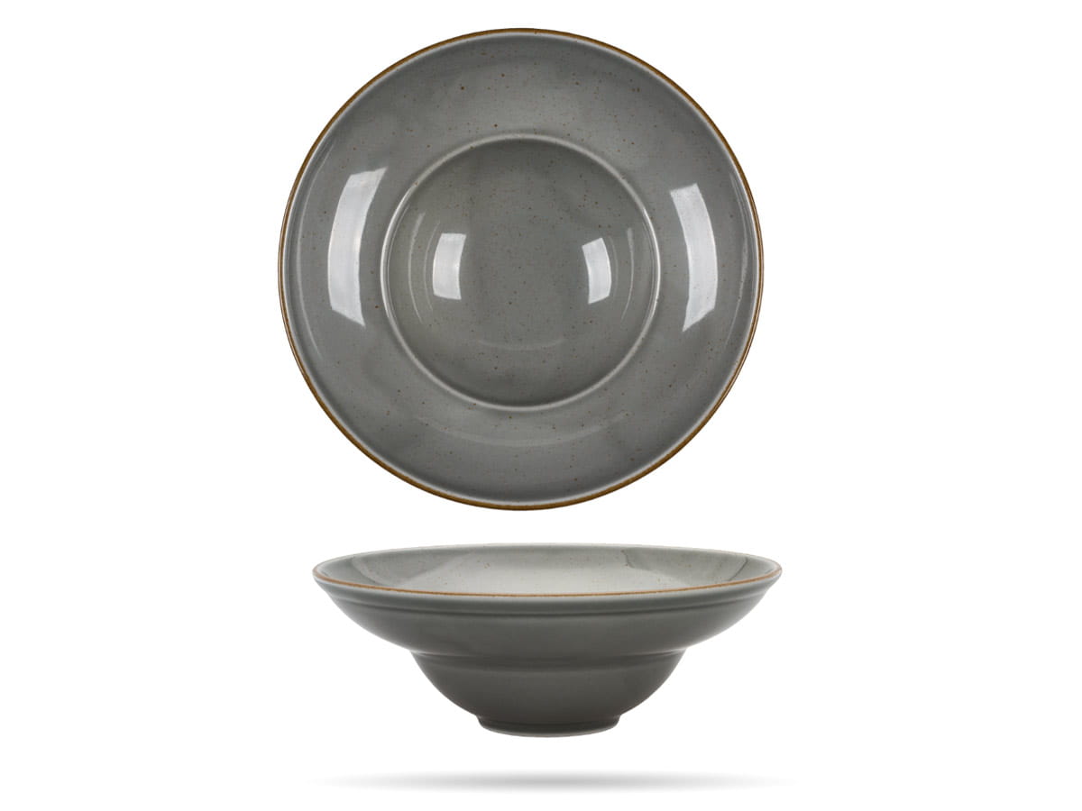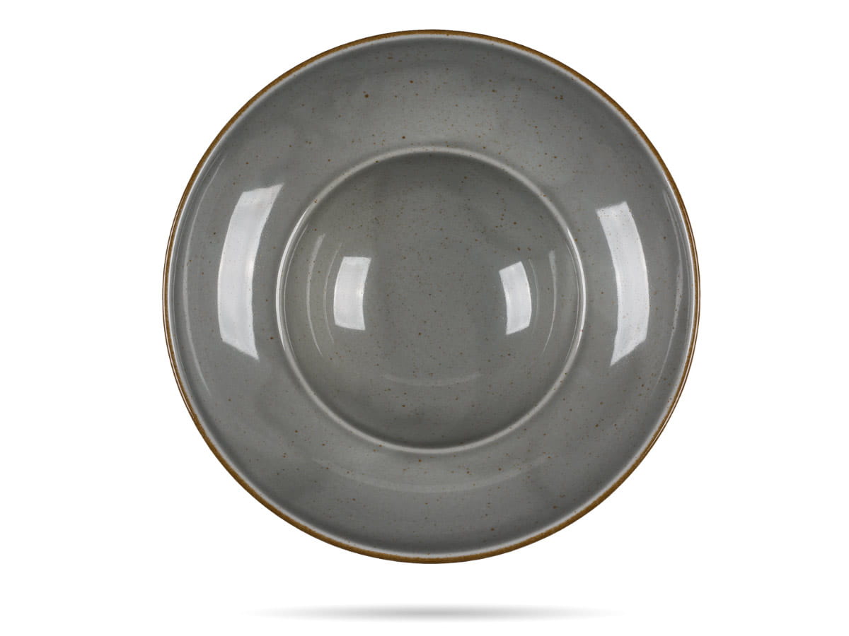 Talerz do makaronu marki Lubiana. Szara barwa i ręcznie nakrapiane zdobienie - pokryte warstwą szkliwa wysokiej jakości, tworzą elegancki połysk i dodają uroku. Jakość wykonania pozwala na intensywne użytkowanie w branży gastronomicznej.