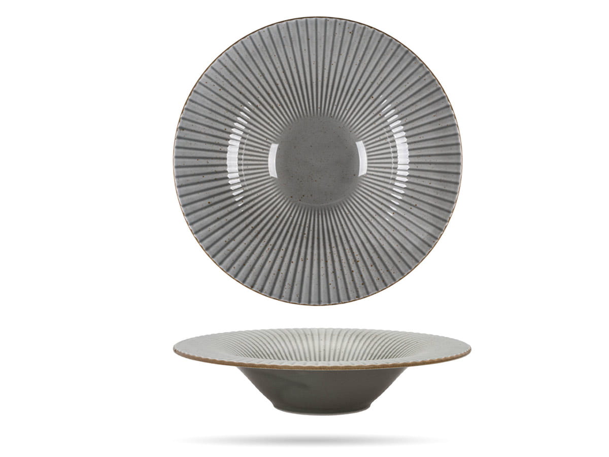Talerz do makaronu, risotto czy pasty w niebanalnej odsłonie - Daisy Lubiana. Relief, szara barwa, ręcznie nakrapiane zdobienie - pokryte warstwą szkliwa wysokiej jakości, tworzą elegancki połysk i bez wątpienia dodaje uroku. Jakość wykonania pozwala na intensywne użytkowanie w branży gastronomicznej.