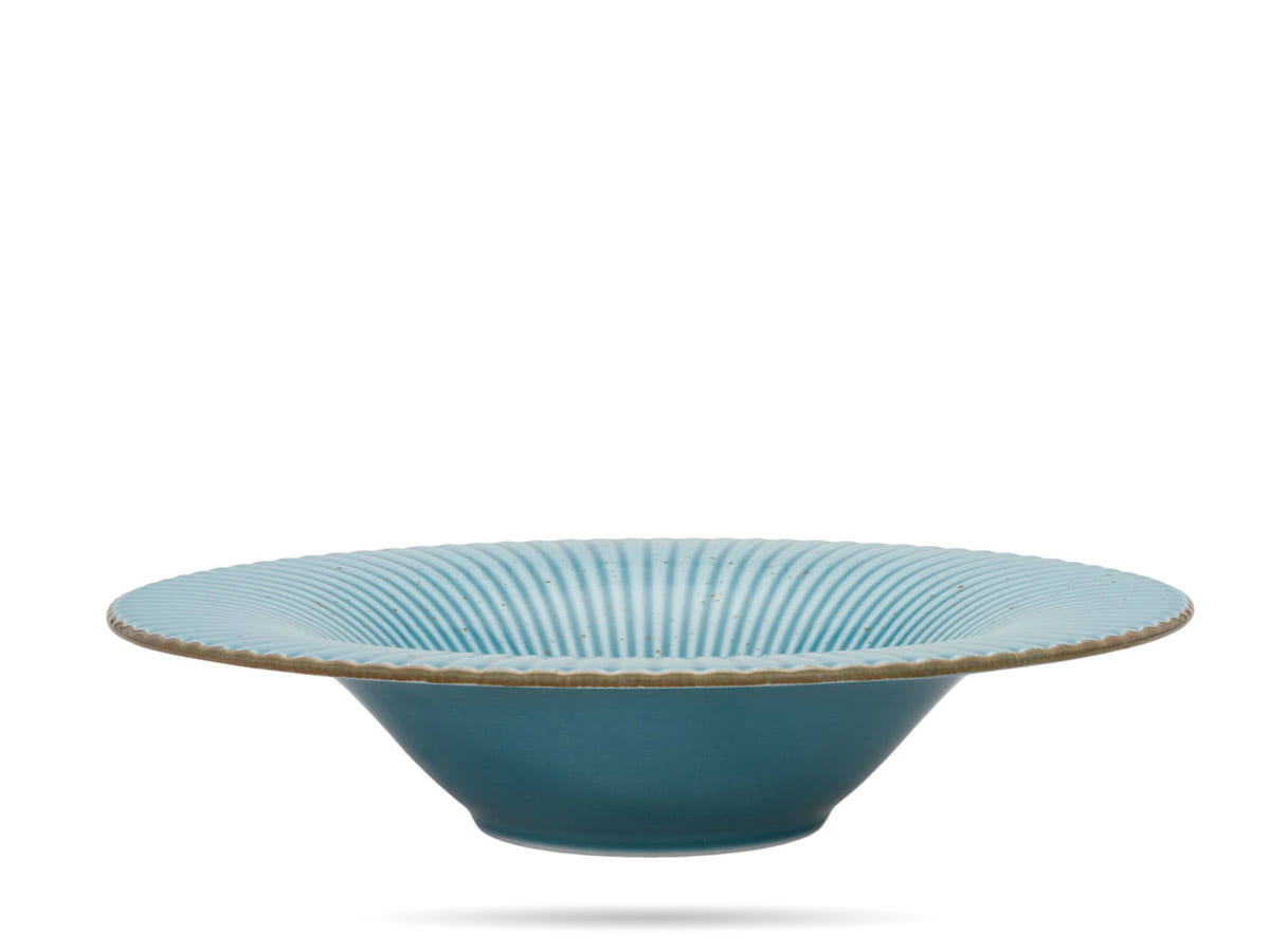 Talerz do makaronu, risotto czy pasty w niebanalnej odsłonie - Daisy Lubiana. Relief, turkusowa barwa, ręcznie nakrapiane zdobienie - pokryte warstwą szkliwa wysokiej jakości, tworzą elegancki połysk i bez wątpienia dodają uroku. Jakość wykonania pozwala na intensywne użytkowanie w branży gastronomicznej.