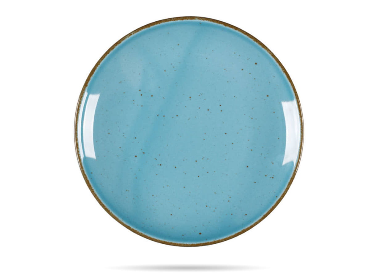 Talerz deserowy marki Lubiana. Turkusowa barwa i ręcznie nakrapiane zdobienie - pokryte warstwą szkliwa wysokiej jakości, tworzą elegancki połysk i dodają uroku. Jakość wykonania pozwala na intensywne użytkowanie w branży gastronomicznej.