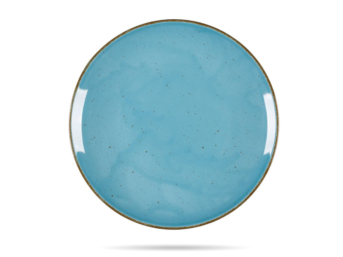 Talerz obiadowy marki Lubiana. Turkusowa barwa i ręcznie nakrapiane zdobienie - pokryte warstwą szkliwa wysokiej jakości, tworzą elegancki połysk i dodają uroku. Jakość wykonania pozwala na intensywne użytkowanie w branży gastronomicznej.