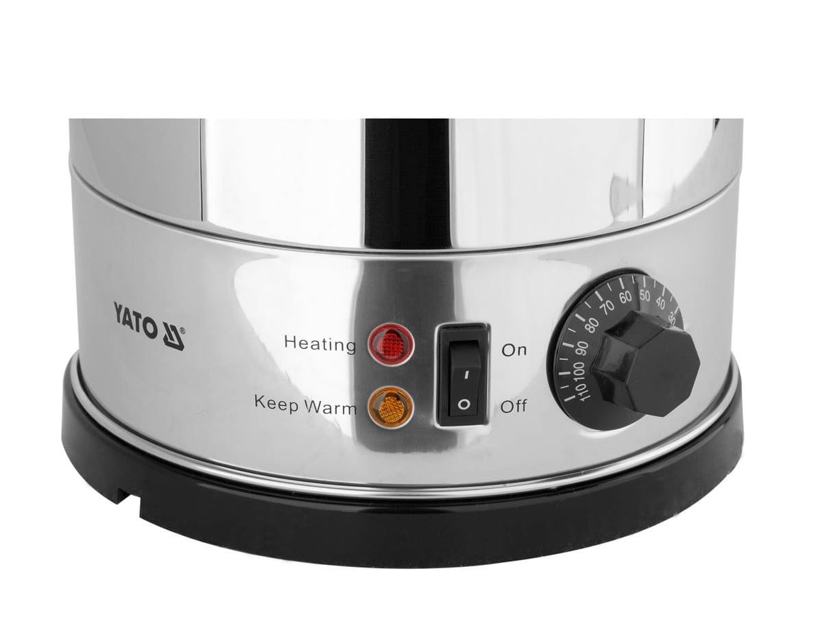 Profesjonalny warnik do wody marki Yato. Stalowy warnik do szybkiego parzenia dużej ilości wody przeznaczonej do przyrządzania kawy, herbaty lub napojów typu instant. Warnik Yato świetnie sprawdzi się w hotelach, salach konferencyjnych i restauracjach. Moc 2500-3000 W. Pojemność 19,1 litra. Wysokość 60 cm. Średnica 27,5 cm.