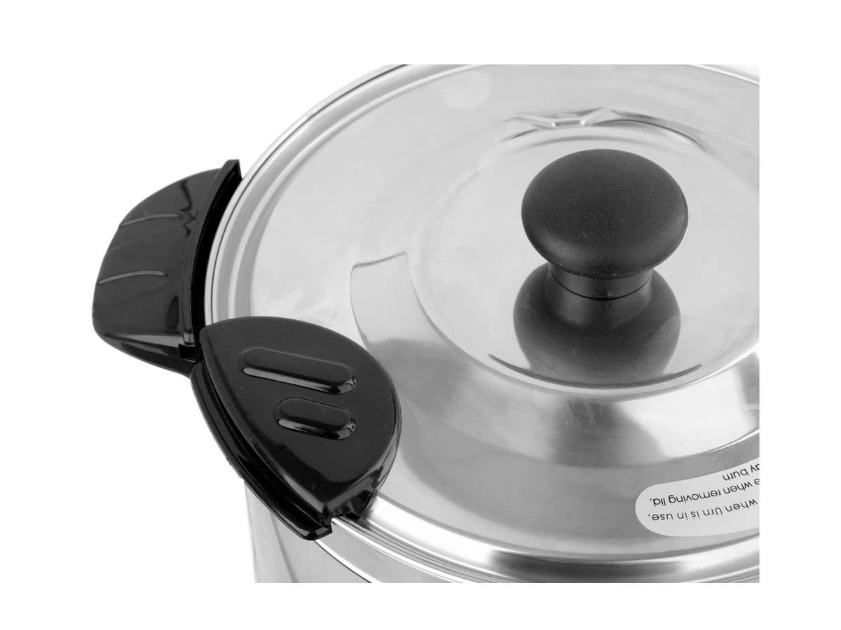 Stalowy warnik wykończony na wysoki połysk. Przeznaczony do zaparzania wody, z grzałką o mocy 2900 W pod dnem warnika. Urządzenie posiada regulację zakresu pracy w przedziale 30~110°C. Wyposażone jest także w lampki kontrolne, które sygnalizują grzanie wody i podtrzymanie temperatury. Warnik posiada dwa nienagrzewające się uchwyty umożliwiające wygodne przenoszenie.