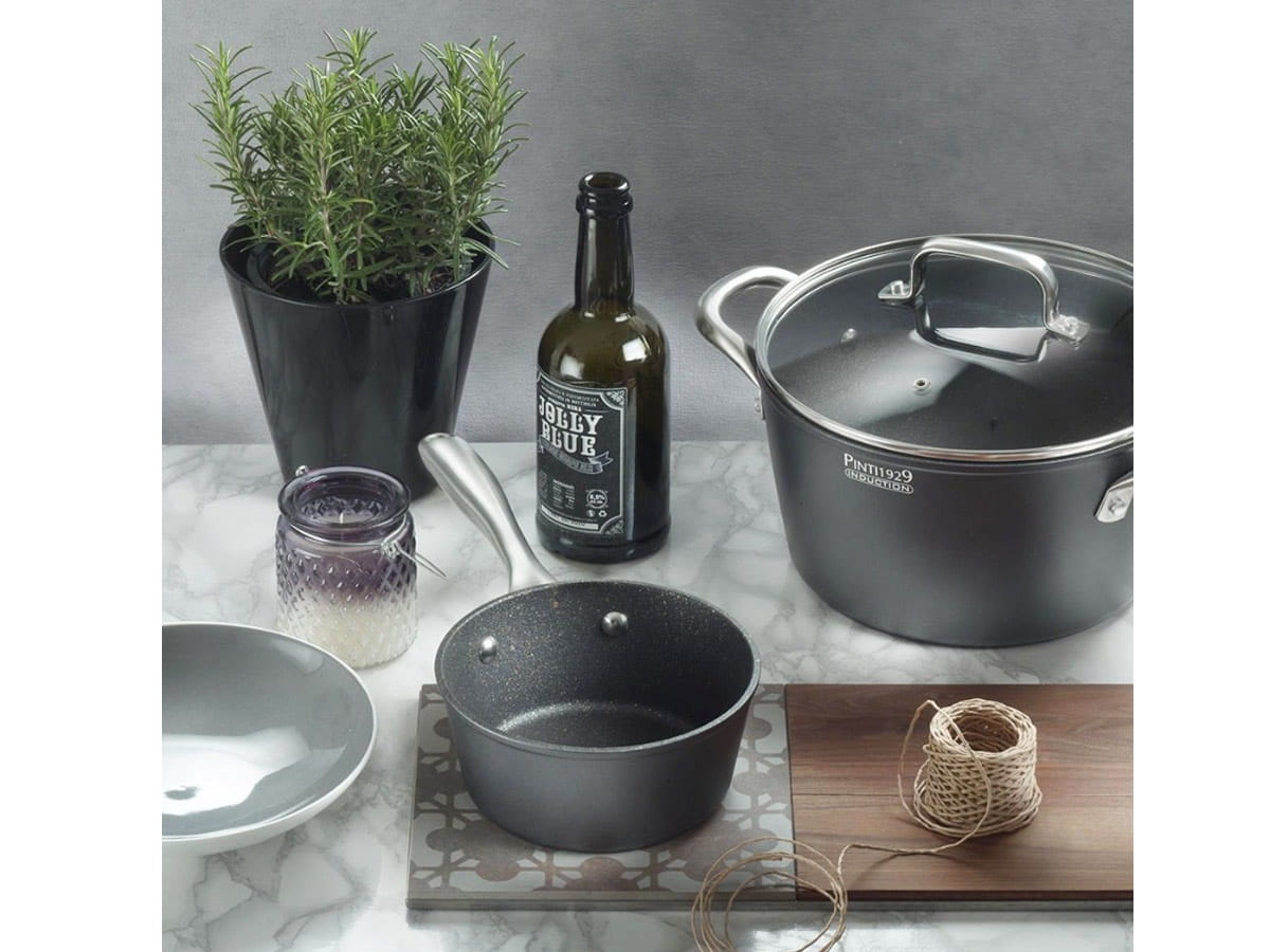 - dzięki korpusowi patelni z litego aluminium, sprawnie się nagrzewa
