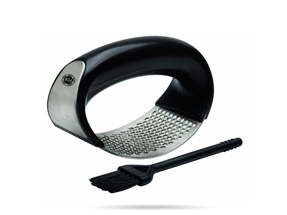 Wyciskacz do czosnku w zestawie ze szczoteczką marki Konighoffer. Wygodna w użyciu, niewielka praska do czosnku przydatna w każdej kuchni.