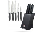 Komplet noży kuchennych, doskonałych do codziennego użytku. Ostre noże wykonane z solidnej stali nierdzewnej, z ergonomicznym, antypoślizgowym uchwytem zapewniają najwyższy komfort użytkowania. Solidny, drewniany blok na antypoślizgowych nóżkach stabilnie stoi na blacie i zabezpiecza nóż przed zanieczyszczeniem. Stylowy blok posiada niezwykle praktyczną podstawkę na książkę kucharską, tablet czy telefon, co bardzo ułatwia gotowanie według przepisu.