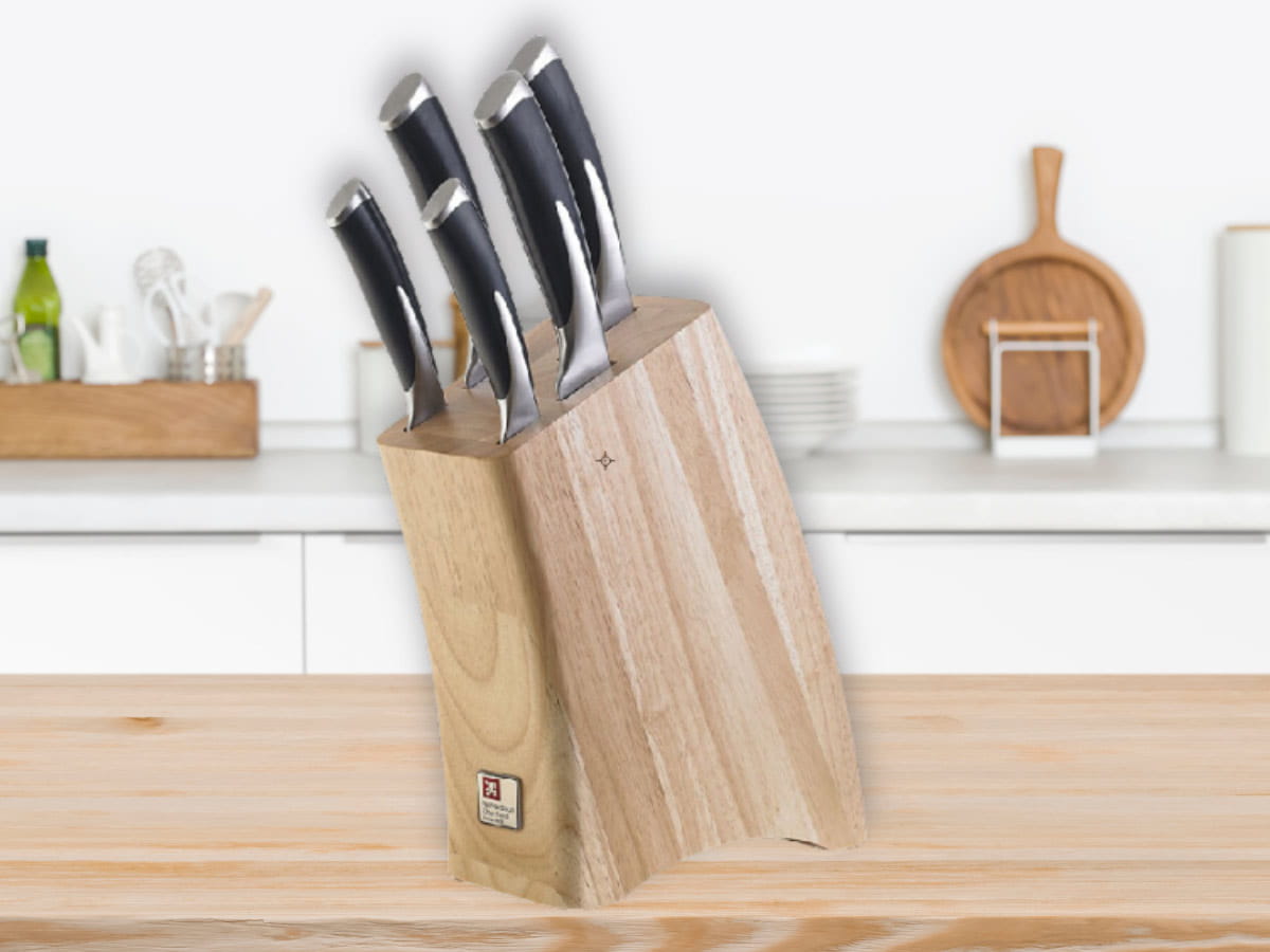 - zestaw noży z blokiem zapakowany jest w firmowy karton - dobry pomysł na praktyczny prezent